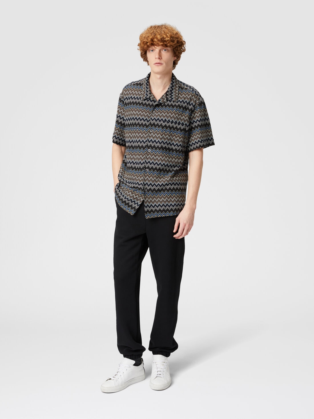 The laggera cotton knit with raschel knit and zigzag pattern gives immediate recognition to the short-sleeved bowling shirt with breast pocket. To wear the Missoni style even on the most informal and sporty occasions.