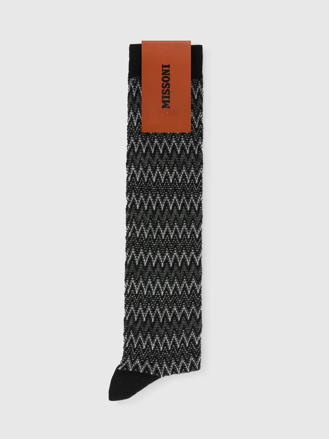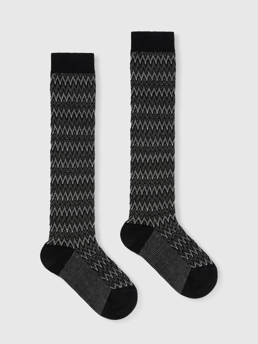 For a Missoni look from head to toe, here are the women's long socks in cotton blend. The brand's recognizable zigzag pattern is emphasized here by contrasting details.