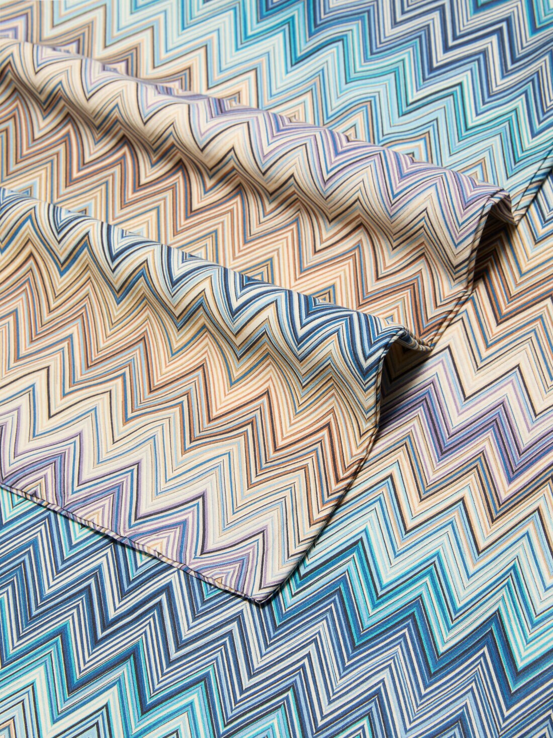 El edredón John Re Edition de Missoni es el elegante protagonista de la cama, con su distintivo motivo chevron que evoca el estilo icónico de la marca. Hecho de 100% algodón, ofrece una sensación de suavidad envolvente y una resistencia duradera. El diseño geométrico y moderno da a la habitación un toque refinado y dinámico. Un complemento decorativo que une estética contemporánea y confort.