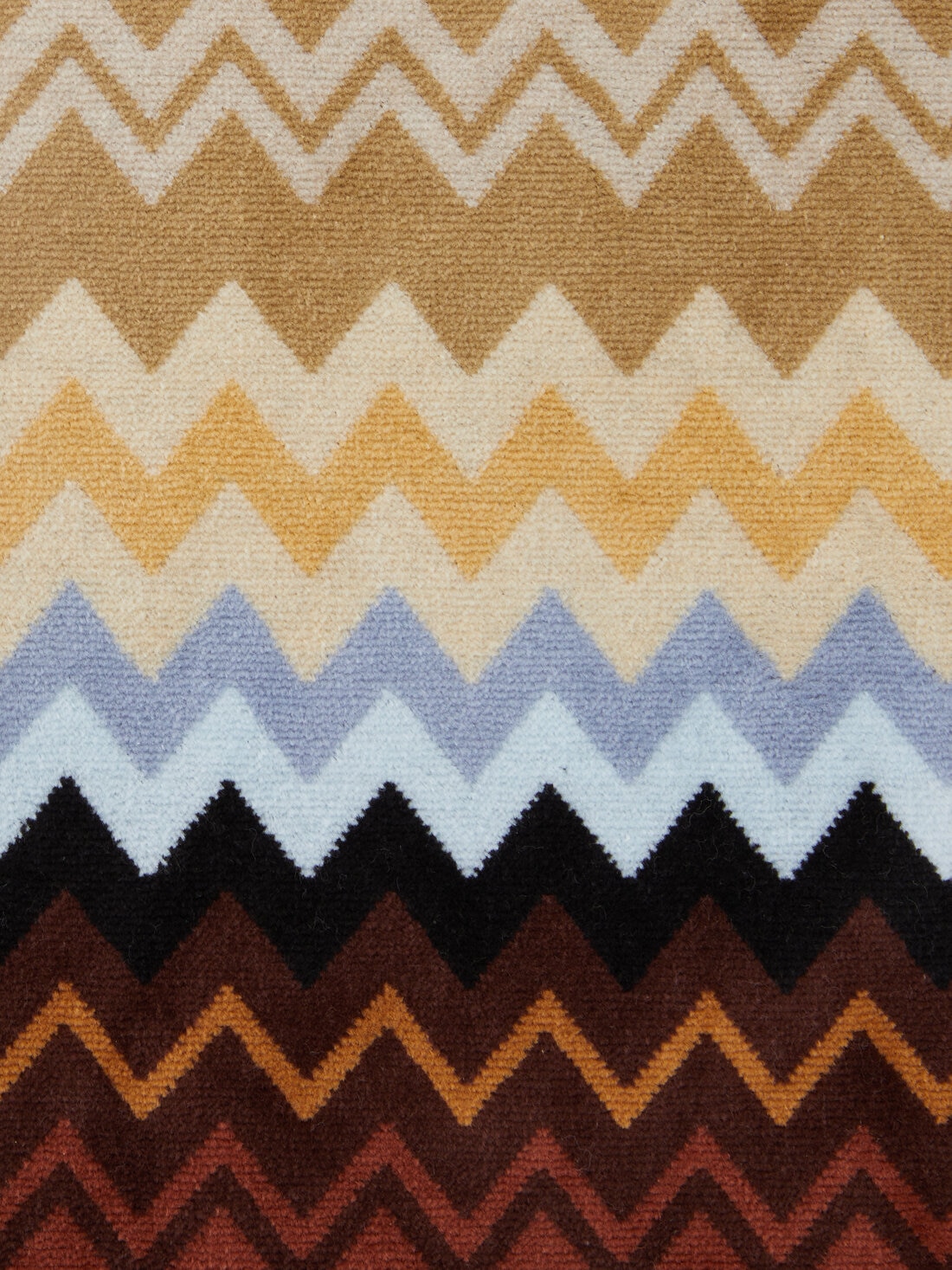 La alfombrilla de baño Giacomo de 90x60 cm es la quintaesencia del estilo Missoni: aquí, la calidad del rizo de algodón aterciopelado se une a la definición del estampado de espigas, que se sumerge en los bordes a rayas para animar este artículo precioso y atemporal.