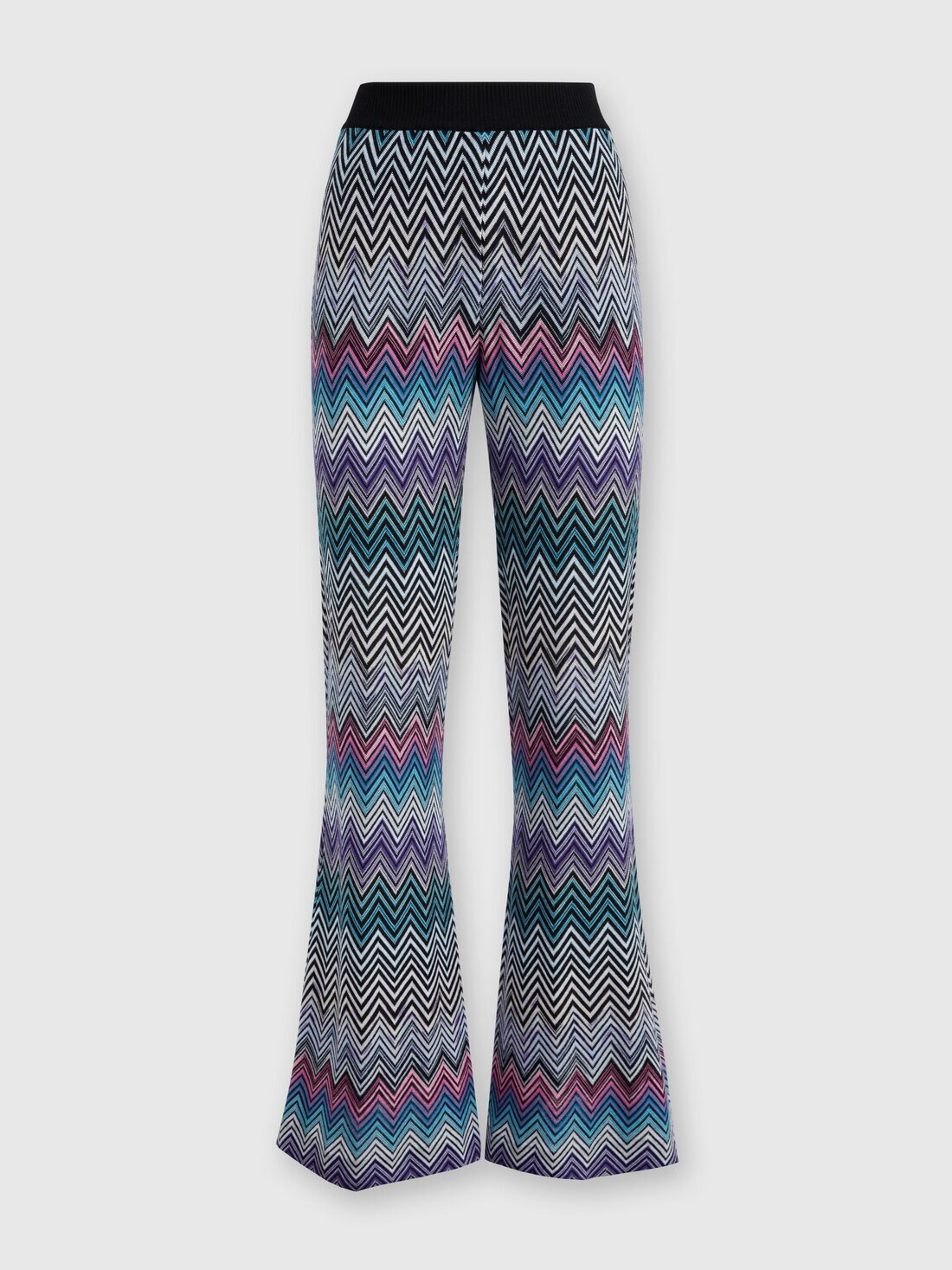 Emblema por excelencia del ADN de Missoni, el punto rachel en zigzag caracteriza el pantalón acampanado con cintura elástica en contraste. Confeccionada en pura lana, es la prenda passe partout del look, perfecta para infundir un toque vitamínico a la estación fría.