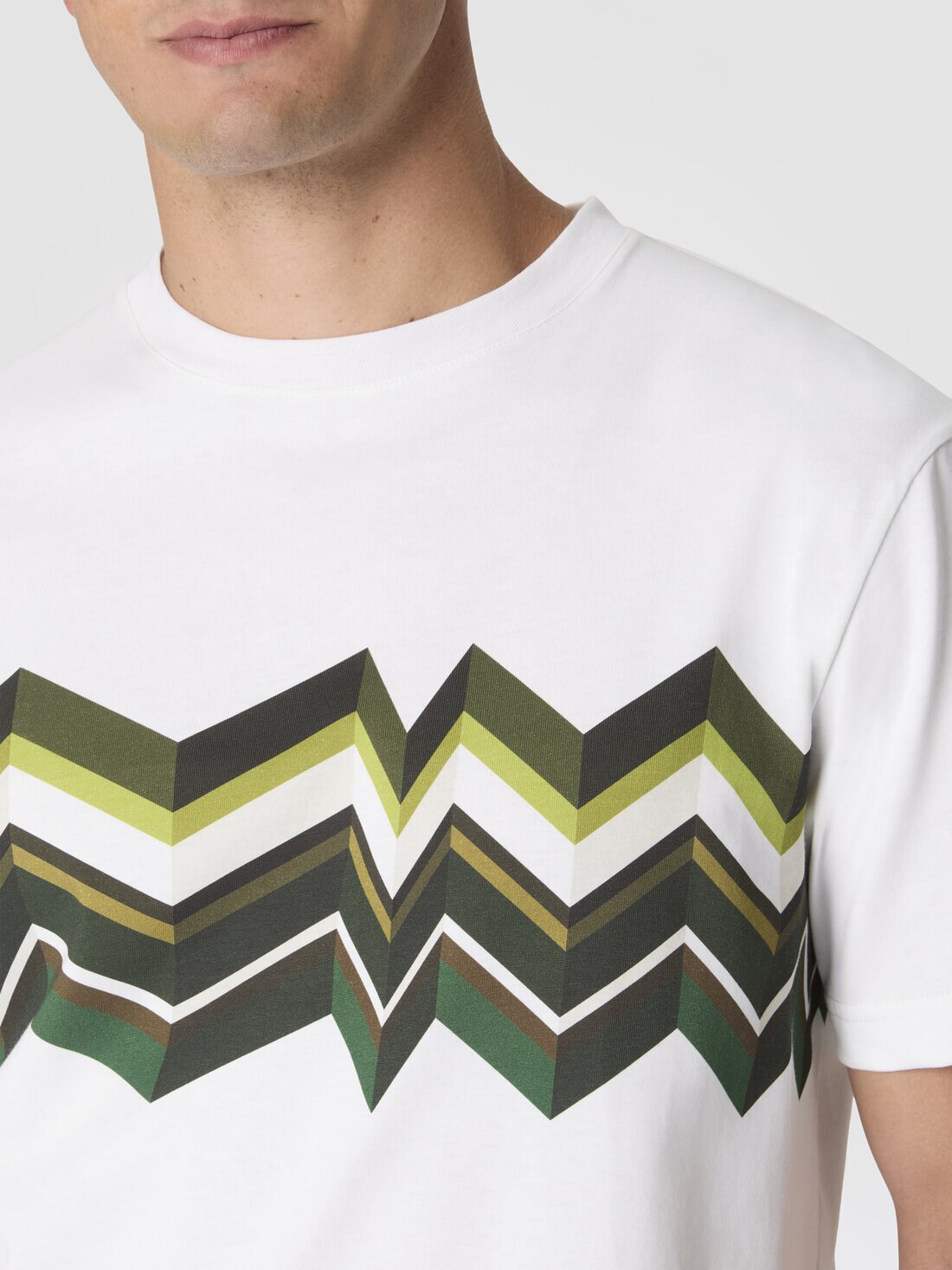 Líneas limpias y grafismos definidos caracterizan esta camiseta de cuello redondo para hombre en algodón, con un estampado de zigzag irregular que reinterpreta de forma contemporánea el estilo icónico de la Maison.