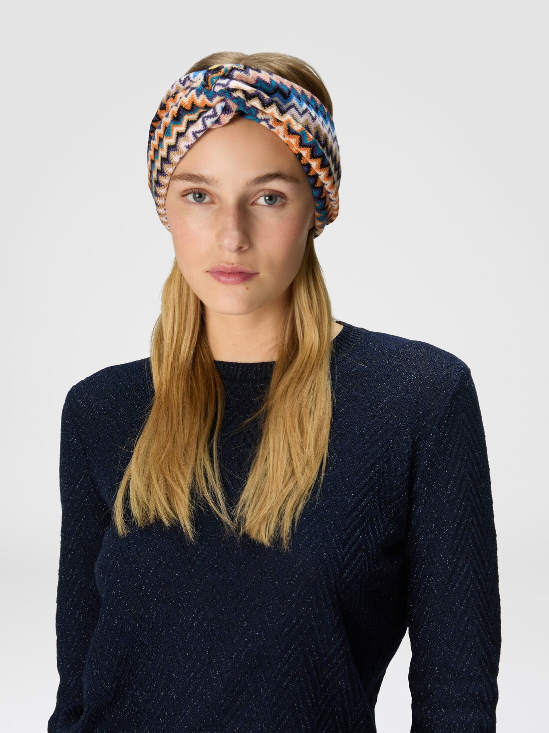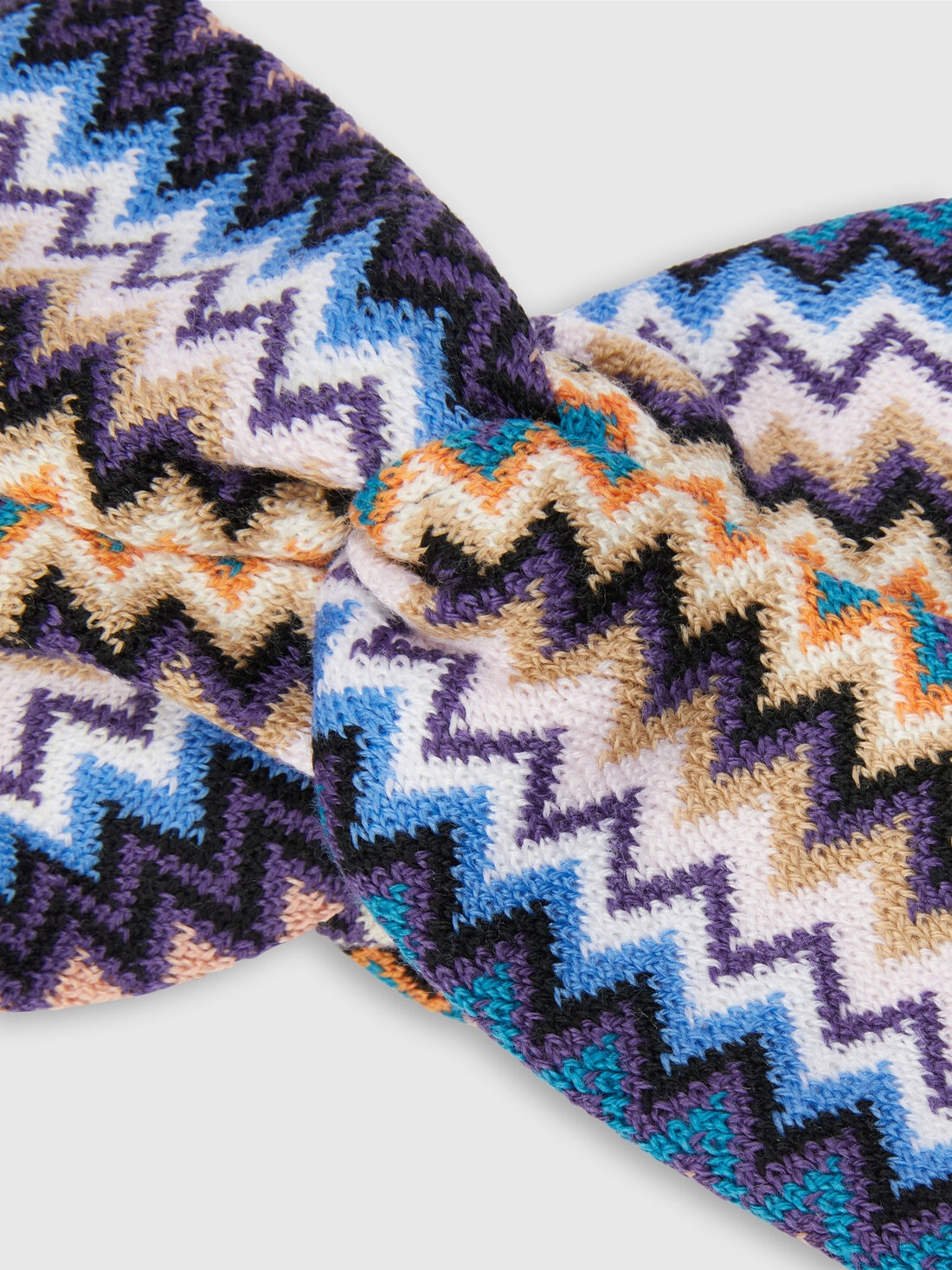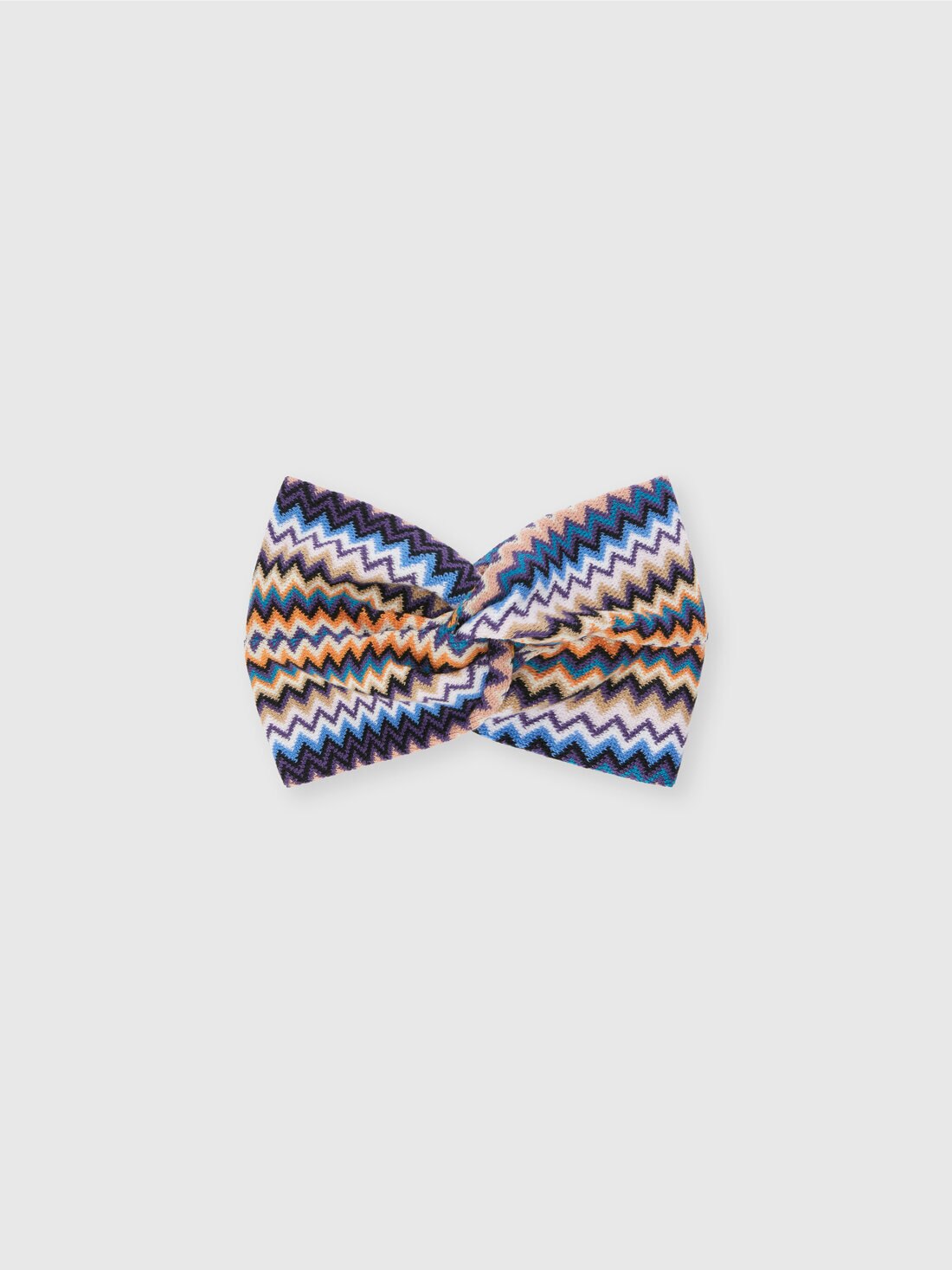 Caracterizada por el nudo central, aquí está la diadema de lana en zig zag: puro estilo Missoni y efecto capullo garantizados con este accesorio perfecto para completar el look en la temporada de frío.