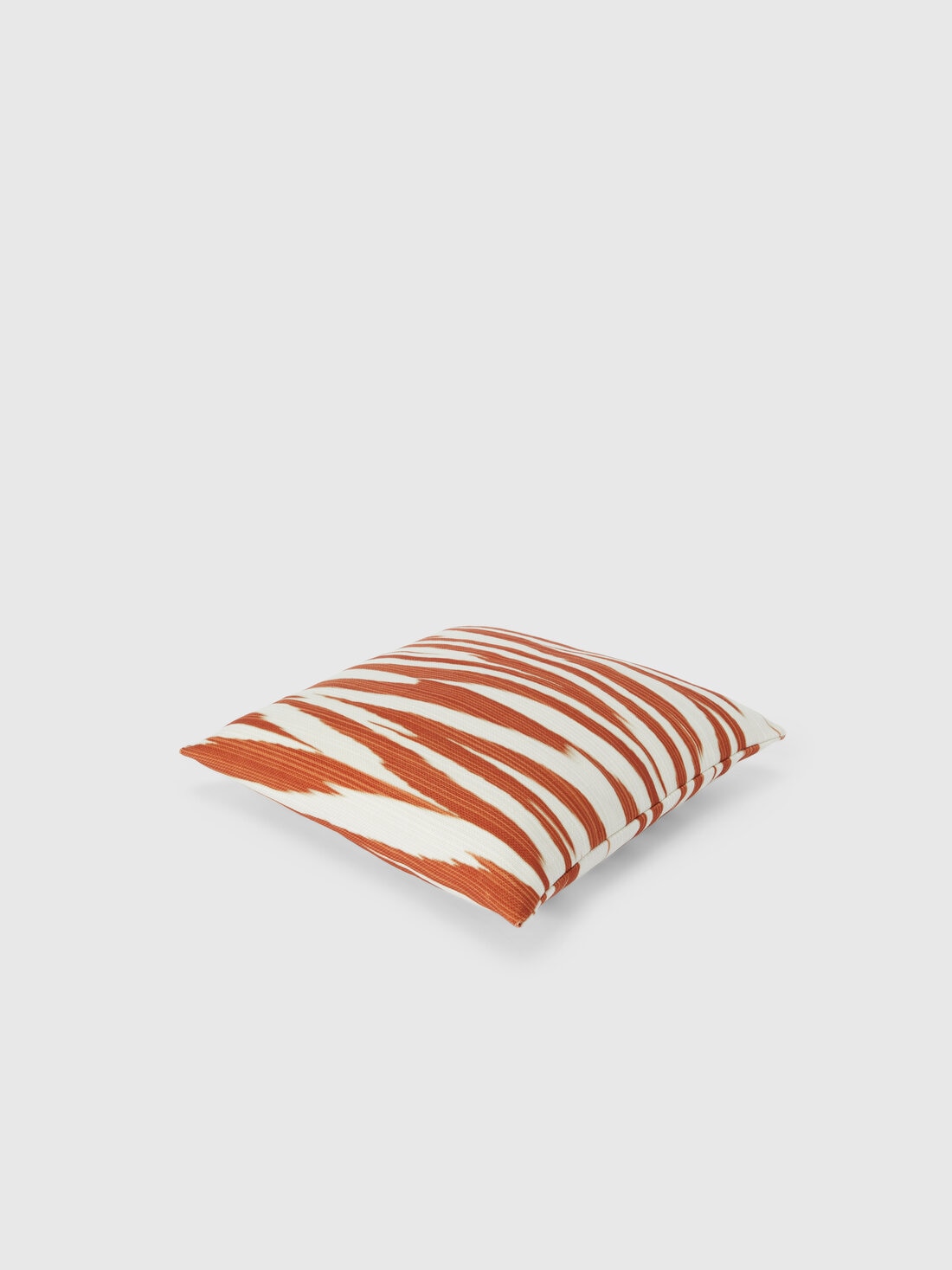 Confeccionado en un tejido resistente a las inclemencias del tiempo, el cojín de exterior Atacama de 40x40 cm está adornado con el distintivo motivo flameado del ADN de Missoni. El resultado es un accesorio con el que personalizar la decoración de patios, jardines y terrazas.