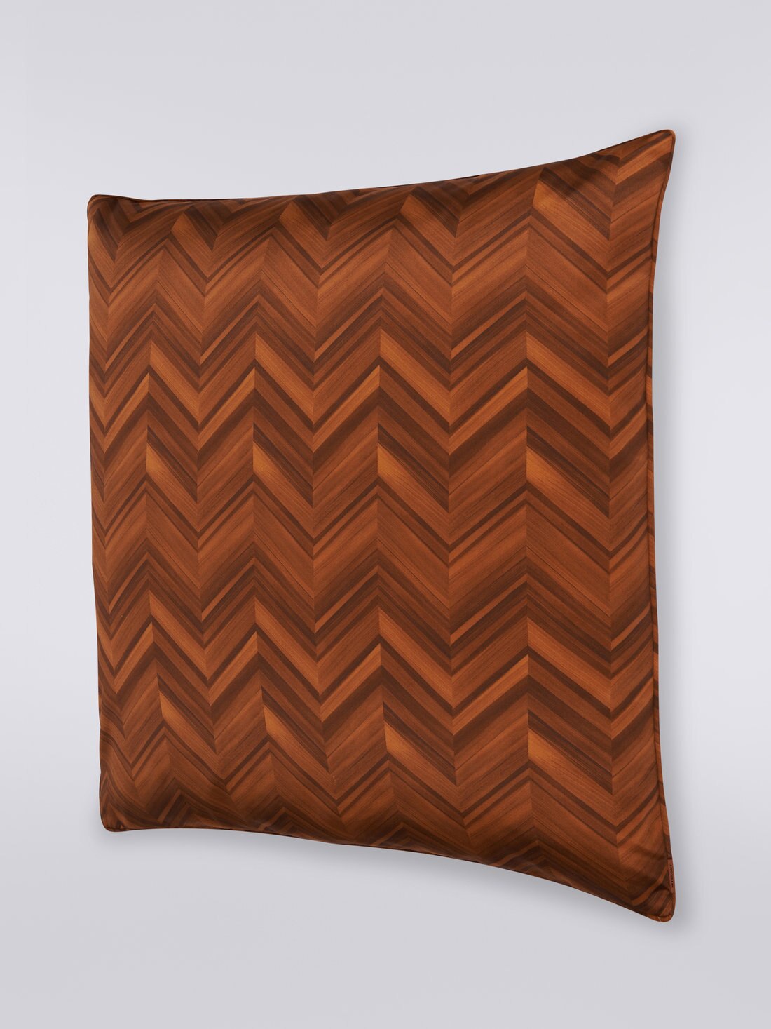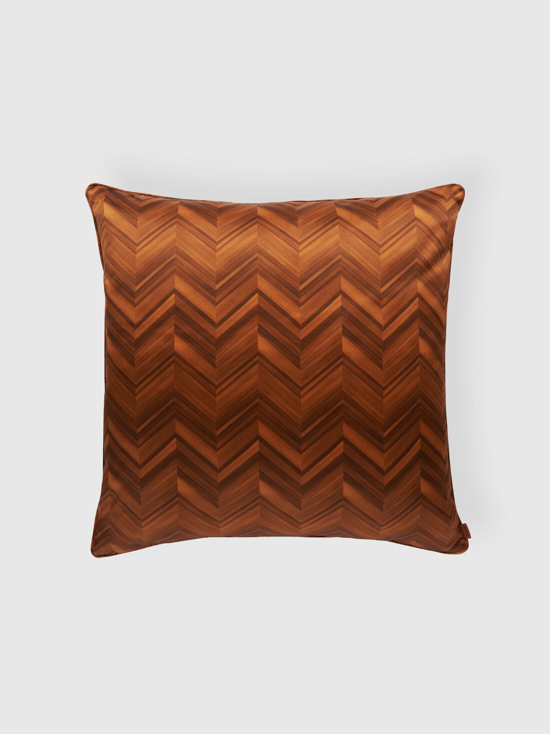 El intrigante juego visual del motivo de espigas, con sus zigzags matizados, se muestra maravillosamente en la sedosa superficie de Layers, el cojín de 60x60 cm en satén de algodón. Este accesorio para el hogar se presenta como un elemento ideal para infundir a cualquier ambiente un toque de calidez y el inconfundible estilo Missoni.