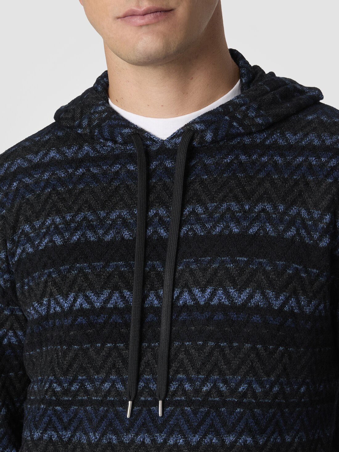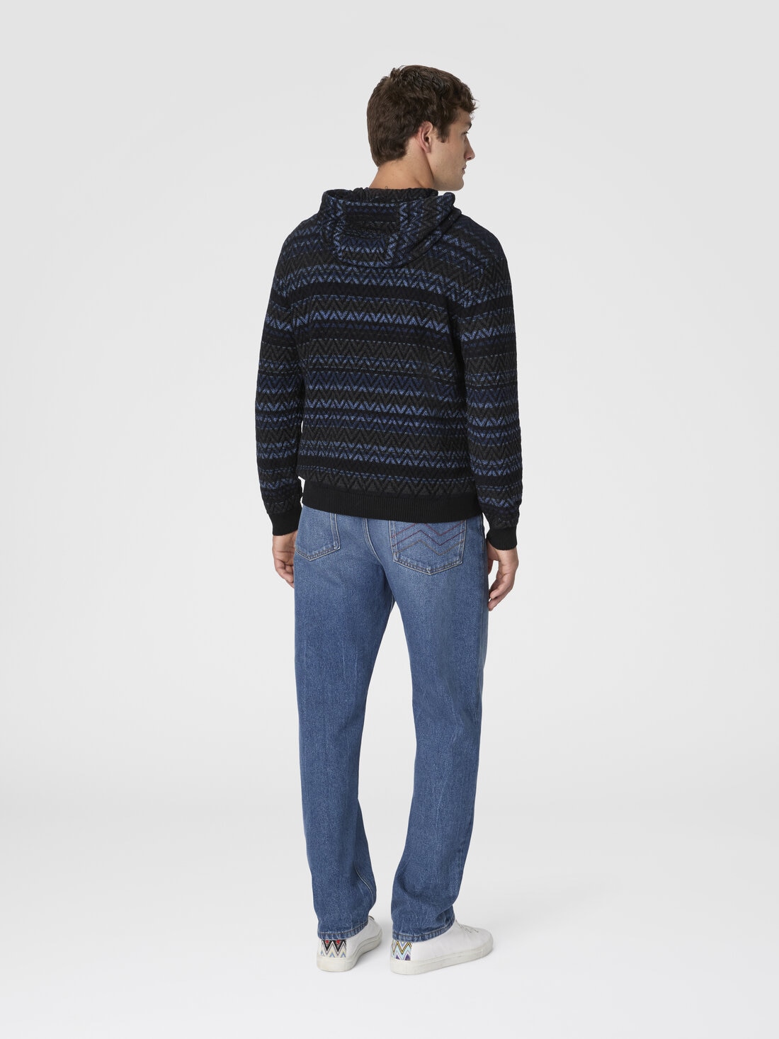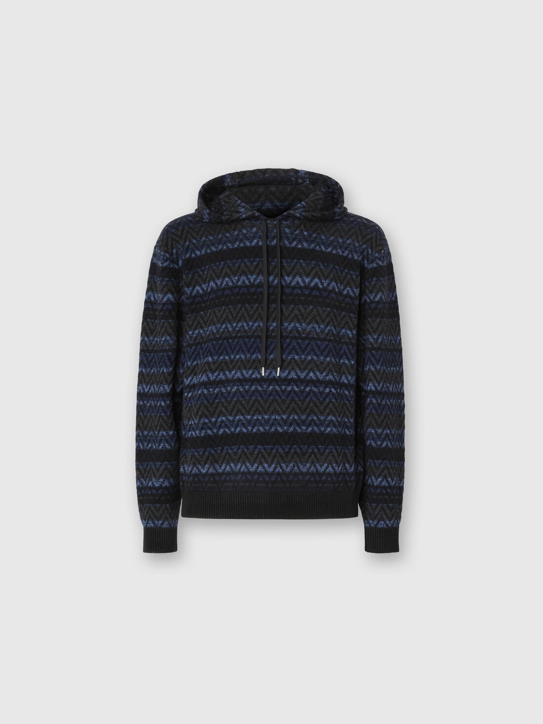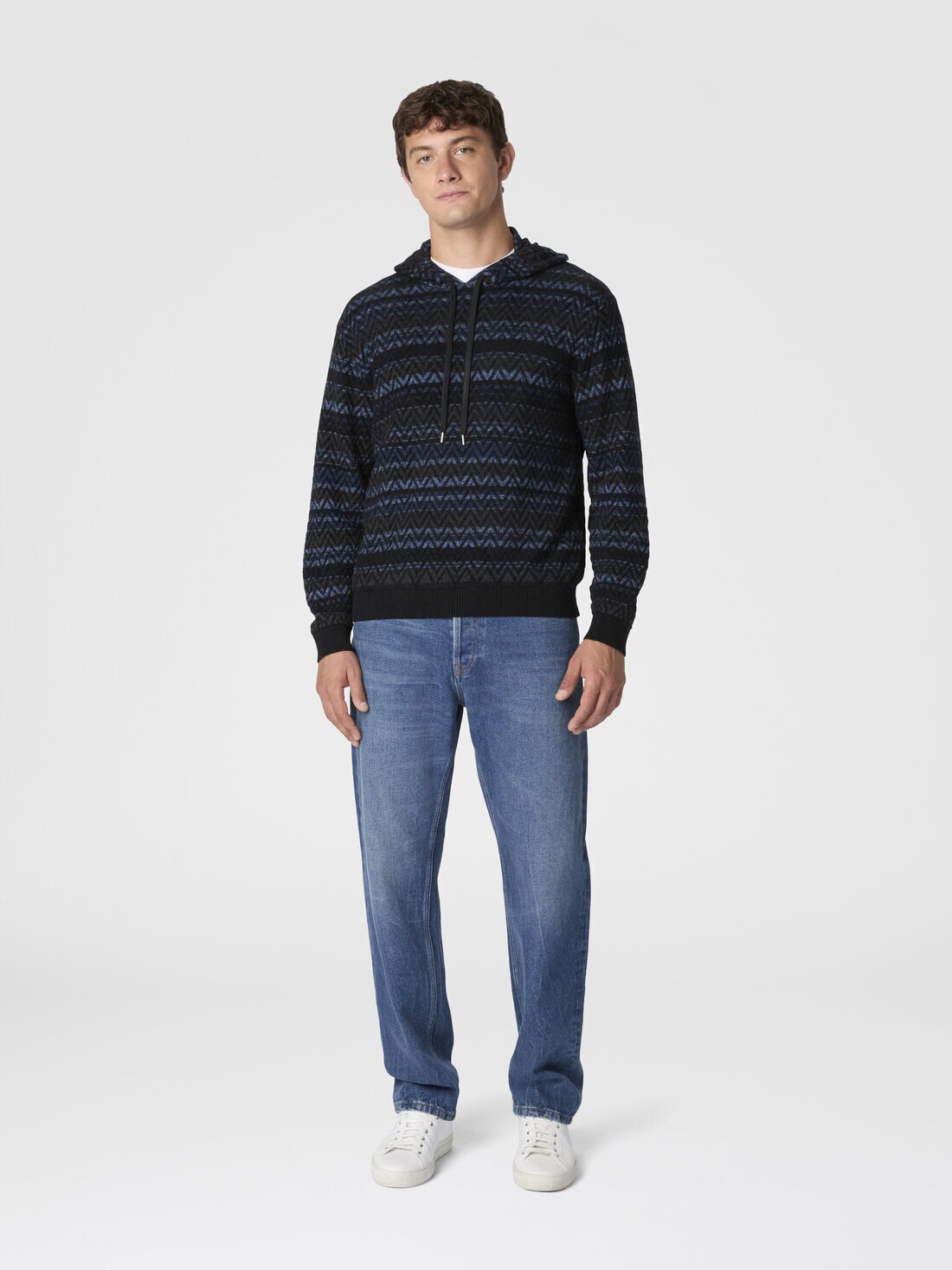 Este jersey con capucha para hombre en mezcla de lana combina el dinamismo del motivo zig zag con un alegre diseño de rayas, creando un equilibrio perfecto entre grafismo y comodidad. La textura suave y el diseño distintivo lo convierten en una prenda ideal para añadir personalidad y estilo al guardarropa diario.