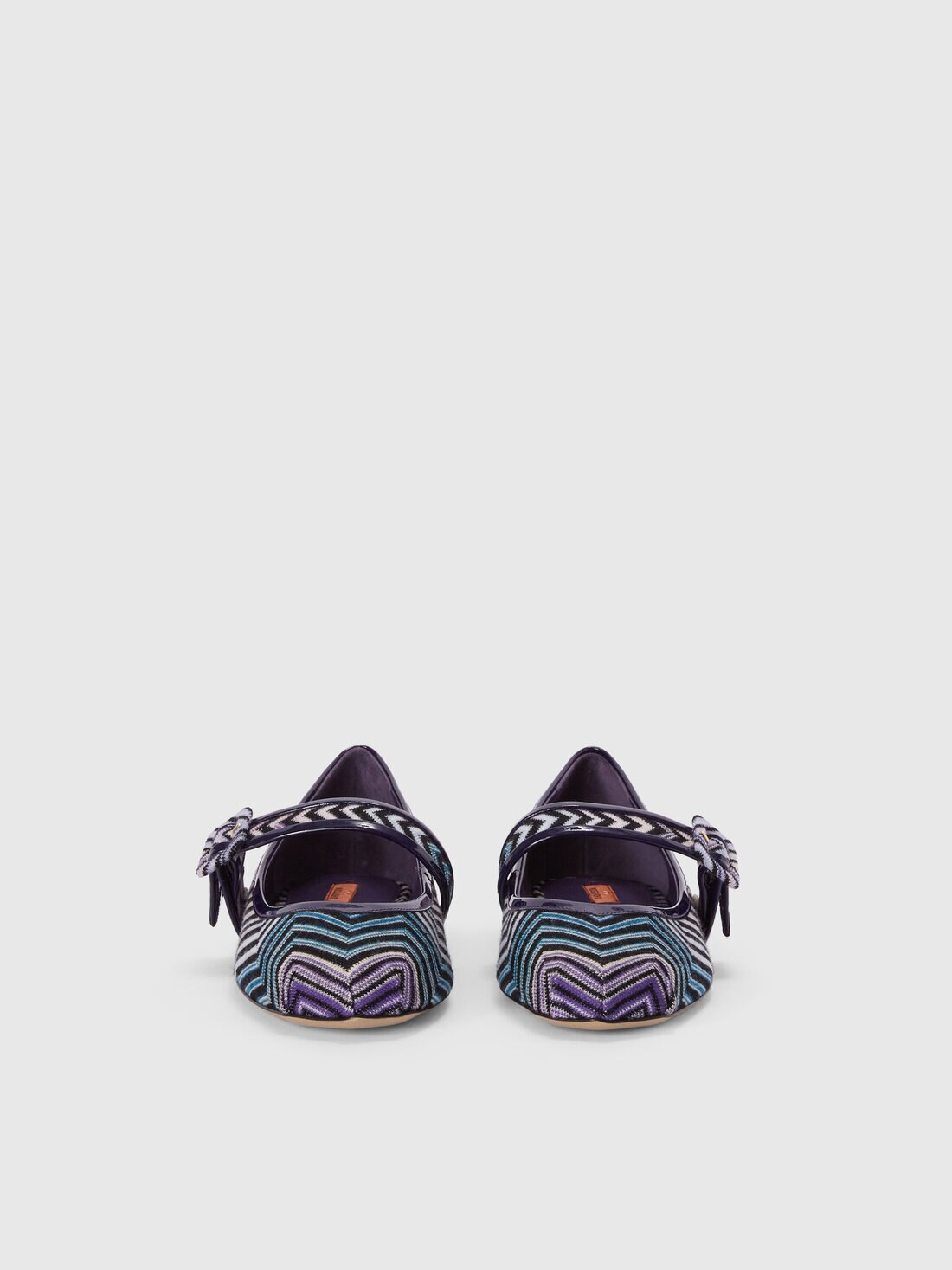 Los perfiles lacados en charol en contraste añaden un toque refinado a las bailarinas de tejido en zig zag. Perfectos para el look diario, estos zapatos de mujer se caracterizan por una correa ajustable y una punta redondeada.