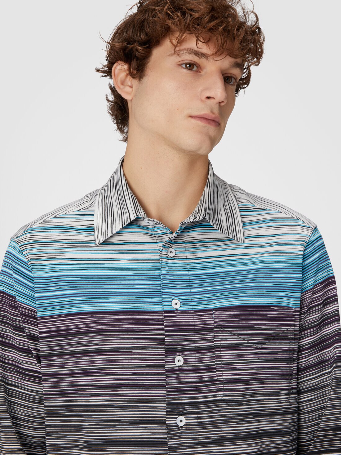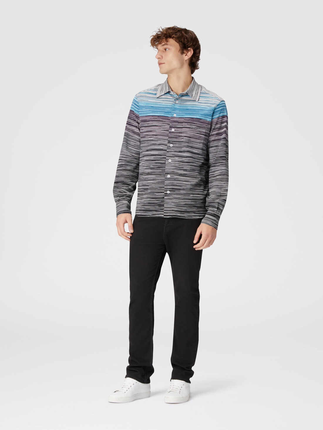 La camisa de manga larga de corte regular se ofrece con una variante muy Missoni: en punto flameado sombreado y con un bolsillo de parche en el pecho.