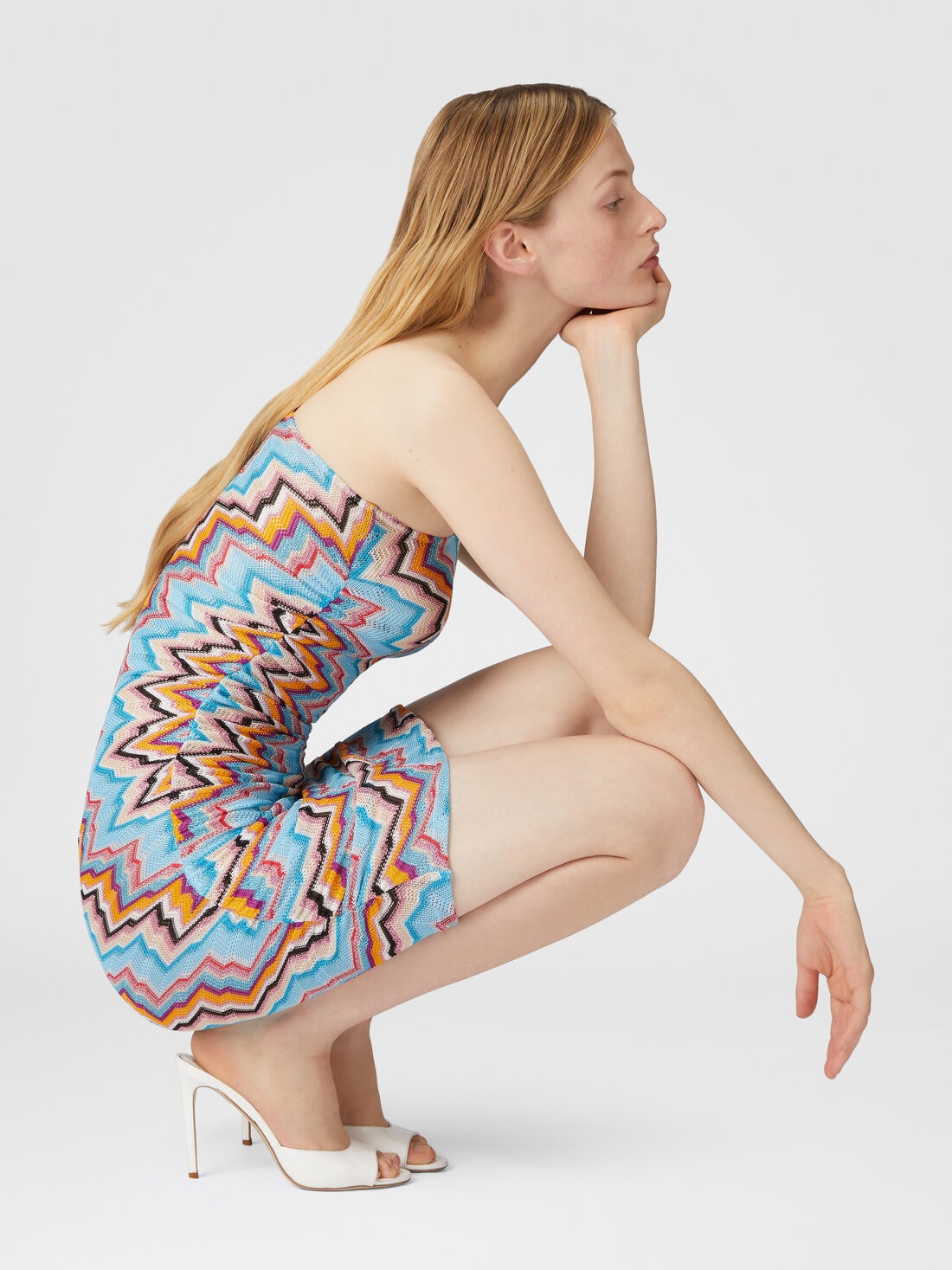 Una audaz y moderna interpretación del icónico motivo zig zag de Missoni. Realizado en viscosa con detalles en lamé, este pareo monohombro combina practicidad y estilo, convirtiéndolo en una elección inconfundible para momentos de relajación sofisticada.