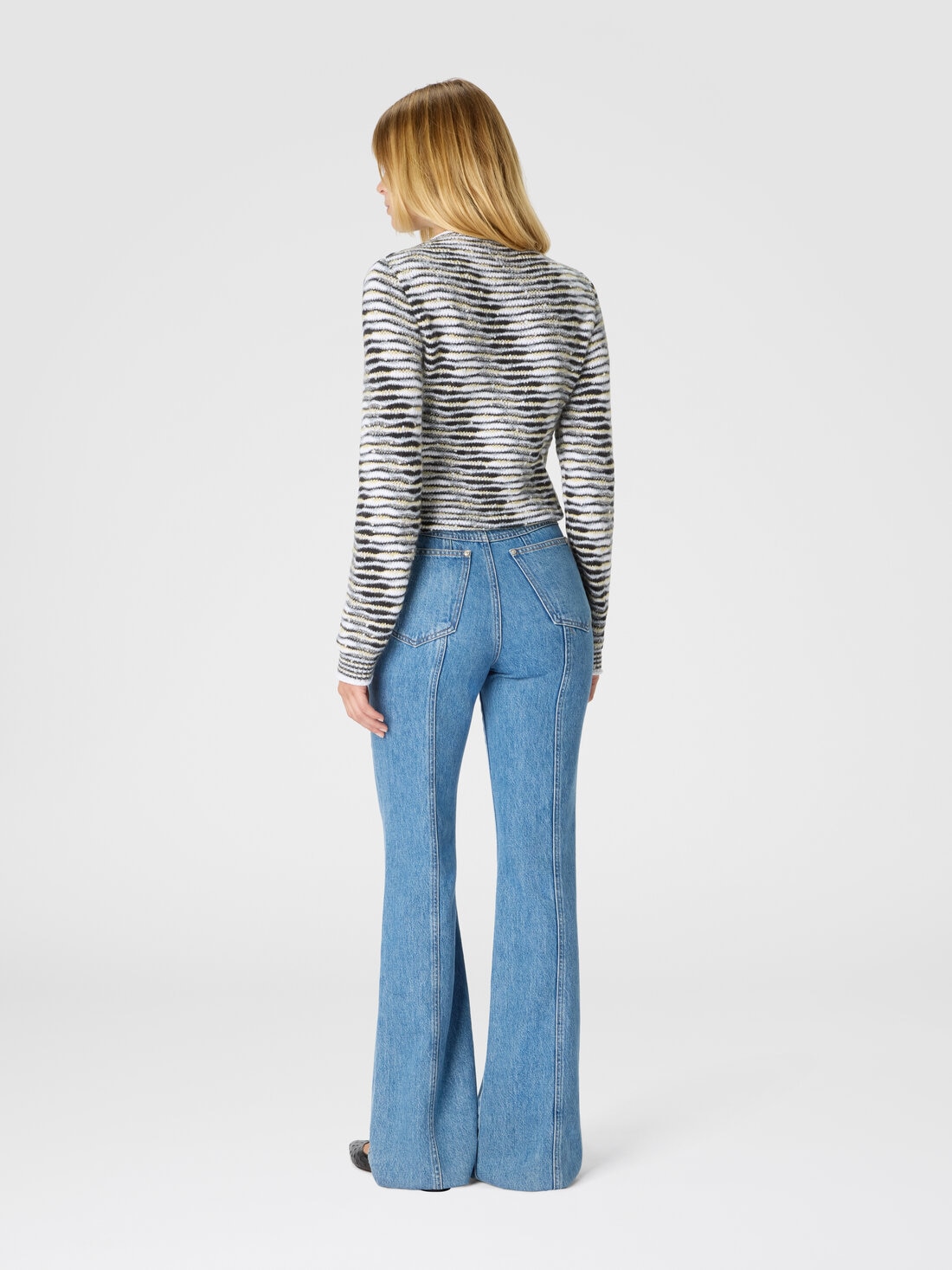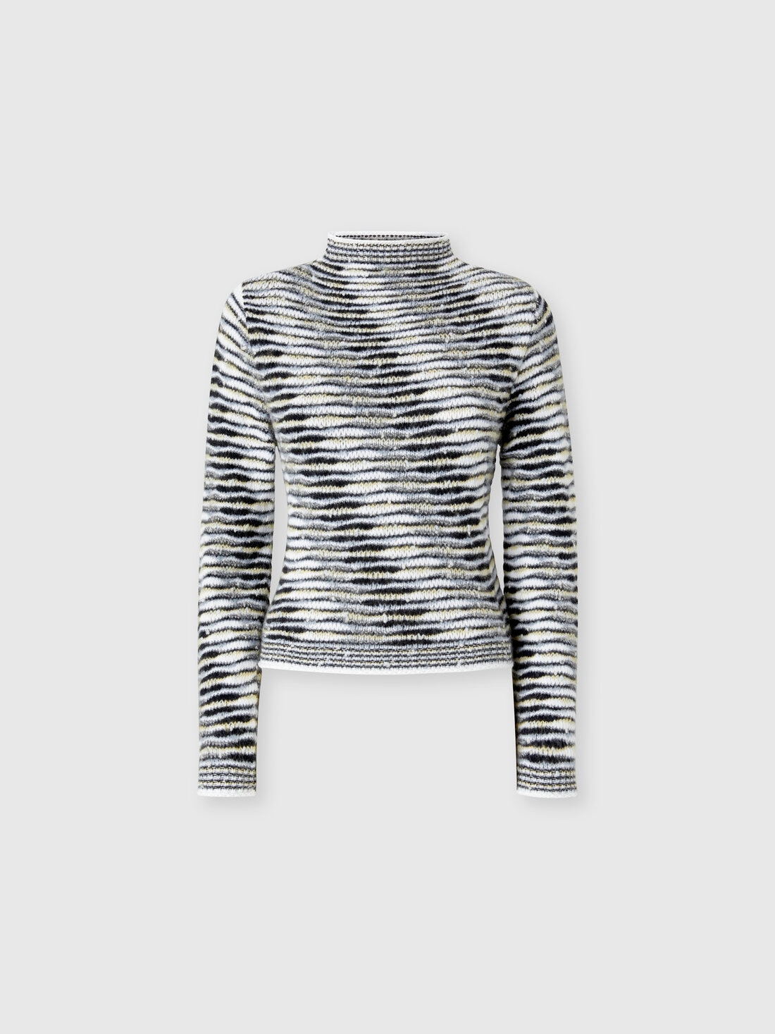 Este jersey de cuello alto boxy fit para mujer de Missoni, confeccionado en mezcla de algodón, se distingue por la refinada confección flameada, expresión de la maestría de la marca en el trabajo del hilo. La textura suave y la silueta relajada ofrecen una comodidad inigualable, mientras que la técnica de confección aporta a la prenda un carácter distintivo y contemporáneo, típico del estilo único de Missoni.