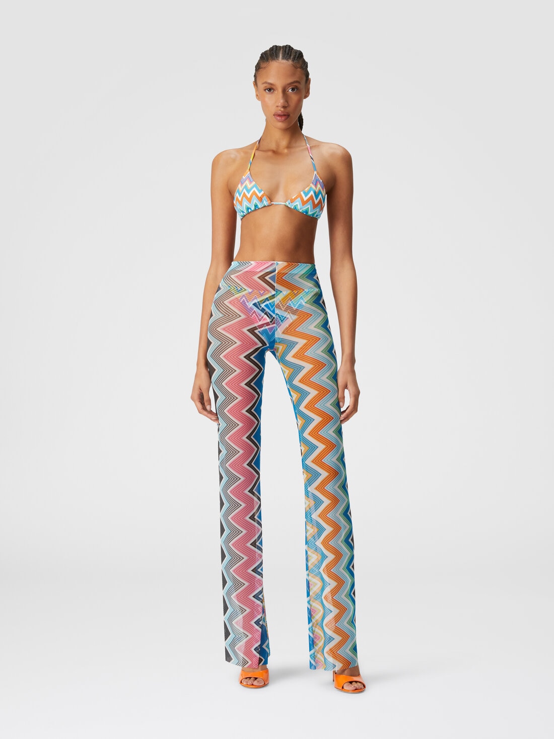 Los pantalones cubrebikini de tul con estampado en zigzag ofrecen un corte recto que sigue las líneas del cuerpo con elegancia y sensualidad. Confeccionados en tul estampado, son un complemento vibrante y a la moda para el atuendo playero, para destacar en perfecto estilo Missoni.