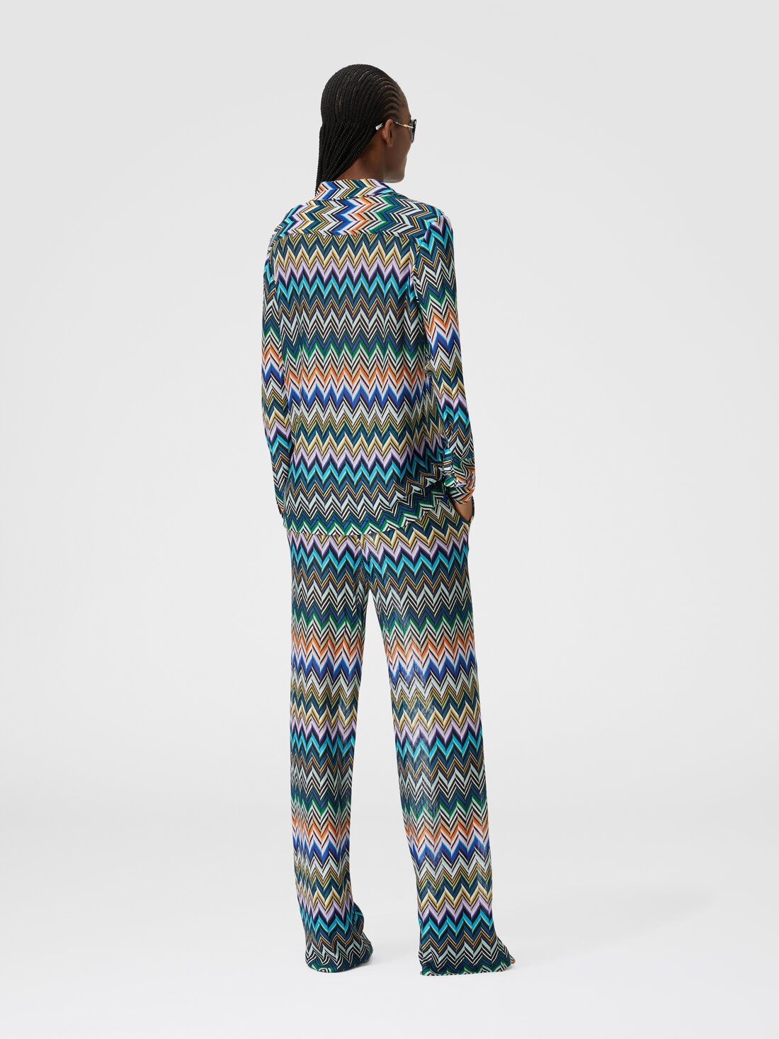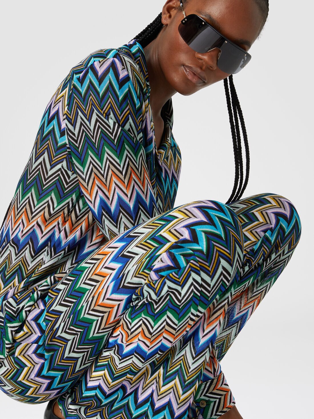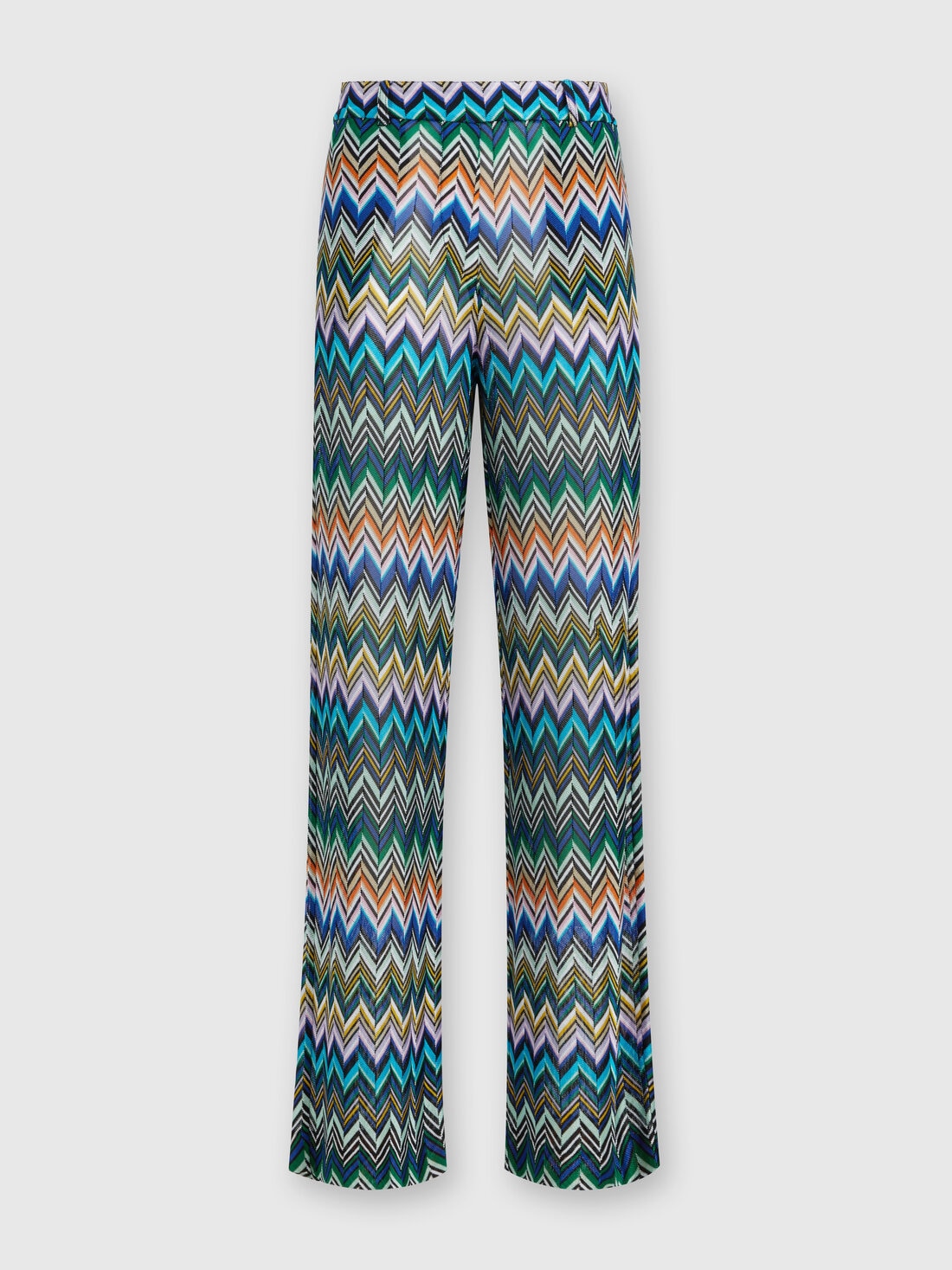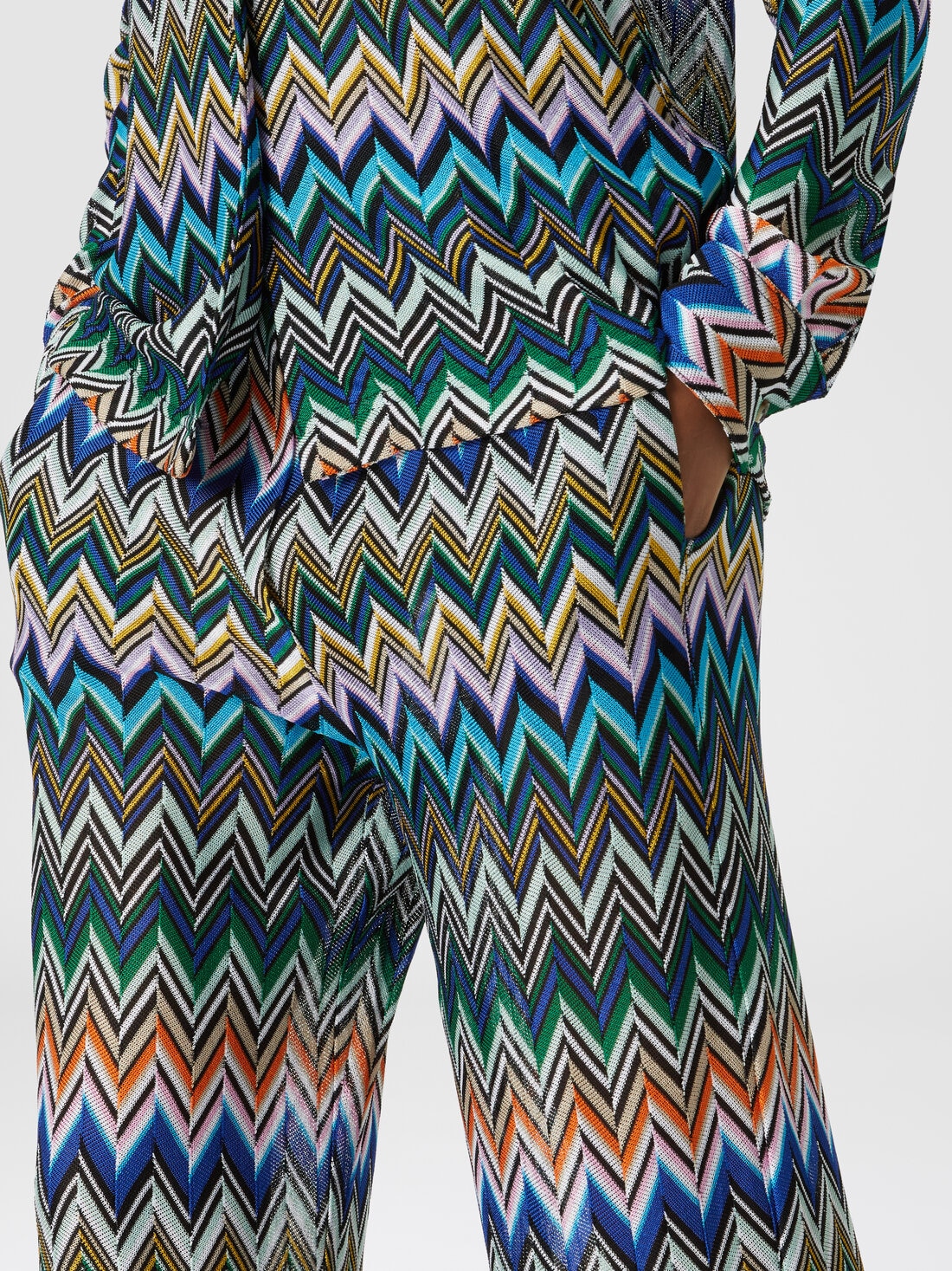 El diseño limpio no hace más que acentuar la atención en la confección raschel con un patrón en zigzag desplazado que caracteriza a los pantalones rectos con bolsillos laterales. Una prenda para el look diario a la que el toque Missoni le da un toque extra.