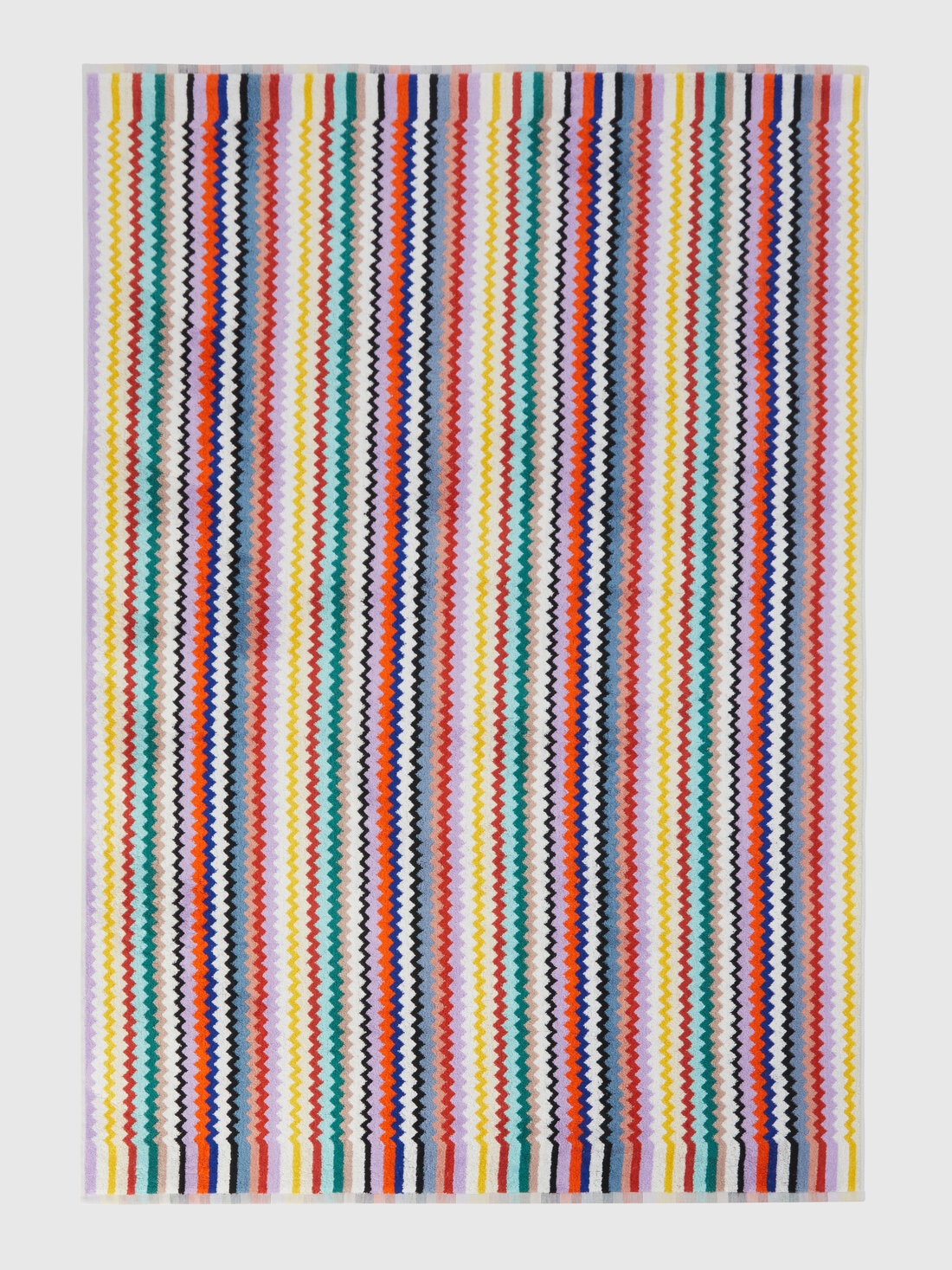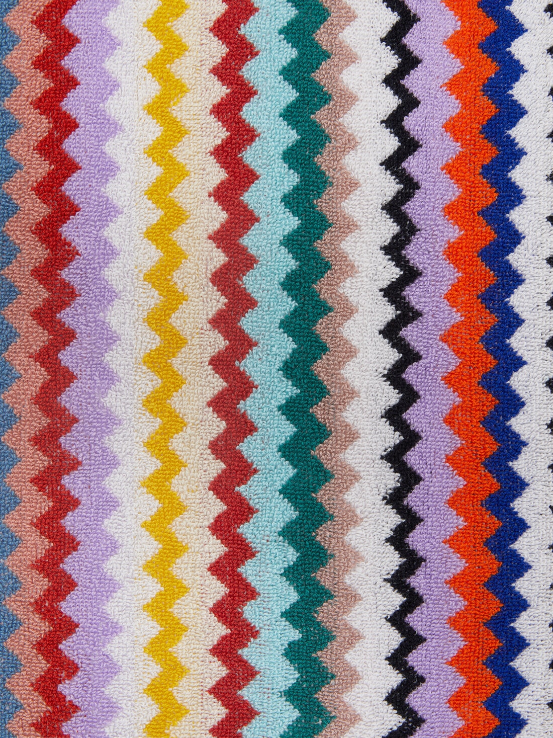 La toalla de baño Riverbero de MissoniHome, de 150x100 cm, es el elemento esencial para completar el cuarto de baño. Confeccionada en suave rizo de algodón aterciopelado, la toalla luce un alegre motivo en zigzag que añade un toque de estilo a la rutina diaria. Los ribetes de jacquard completan el aspecto refinado de esta toalla, garantizando una comodidad y una elegancia inigualables.