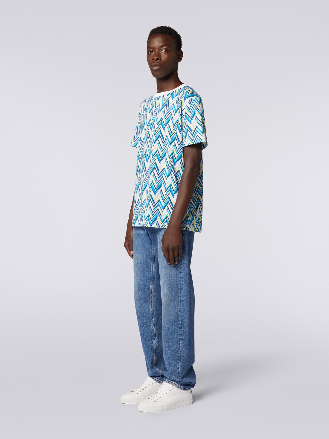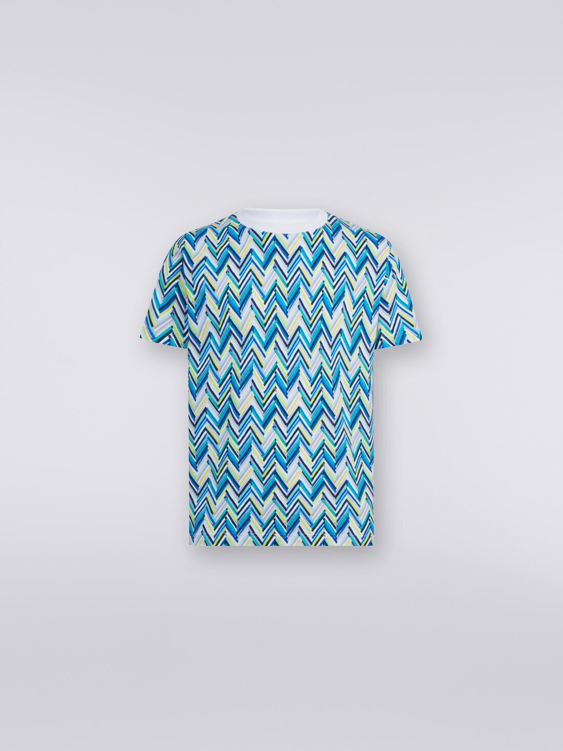 El característico estampado en zigzag cepillado hace su aparición en este modelo de camiseta de manga corta para hombre de Missoni. El ajuste regular y el cuello redondo en color liso en contraste completan el diseño.