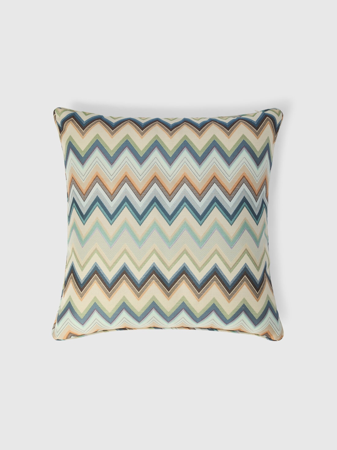 El cojín Agadir, en formato 60x60 cm, interpreta el motivo zigzag sobre un tejido de mezcla de algodón, creando una superficie dinámica y matérica. Un complemento decorativo que dialoga con el entorno a través del ritmo del diseño, aportando un acento decorativo decidido y armonioso a sofás y espacios living.