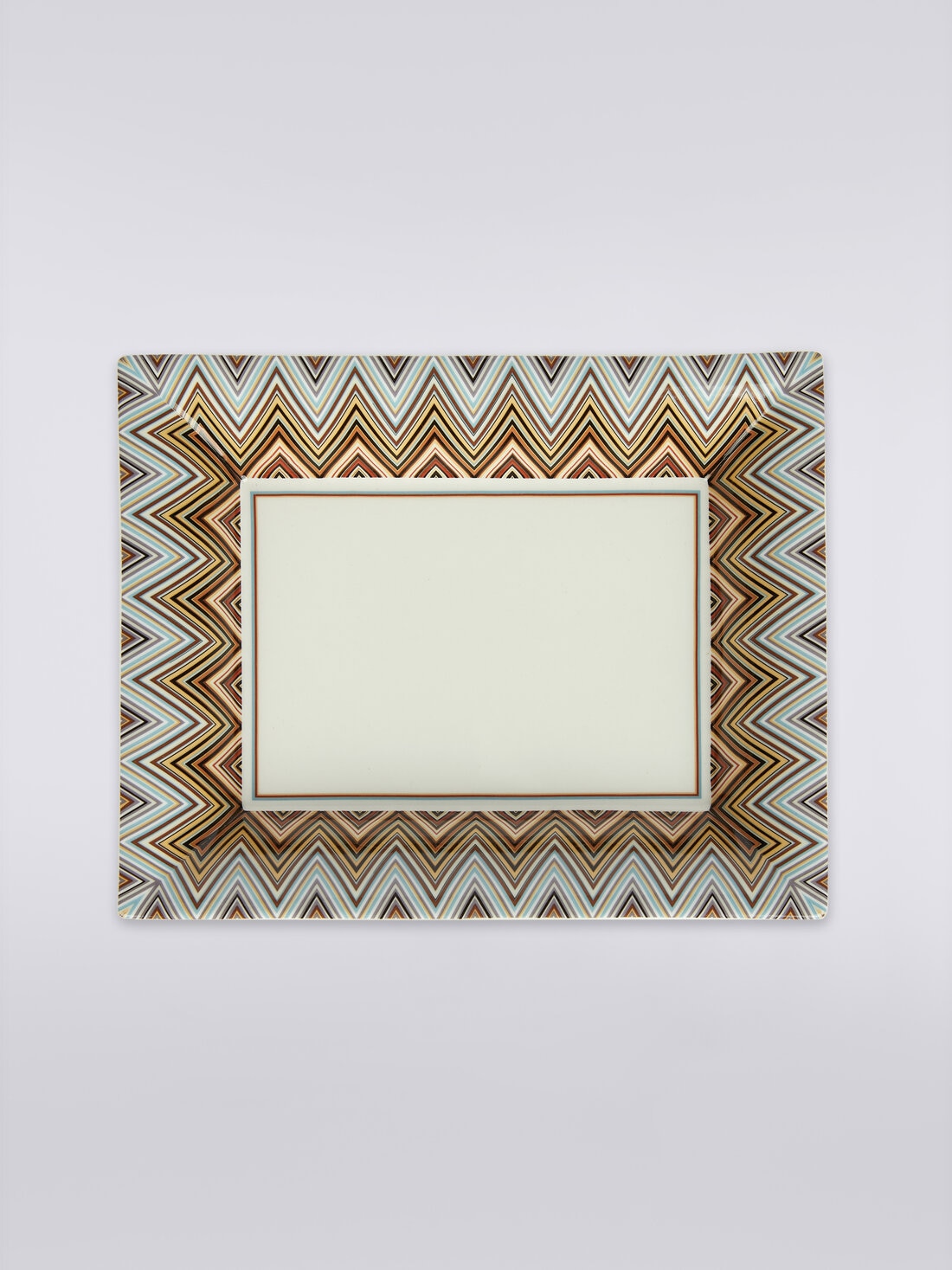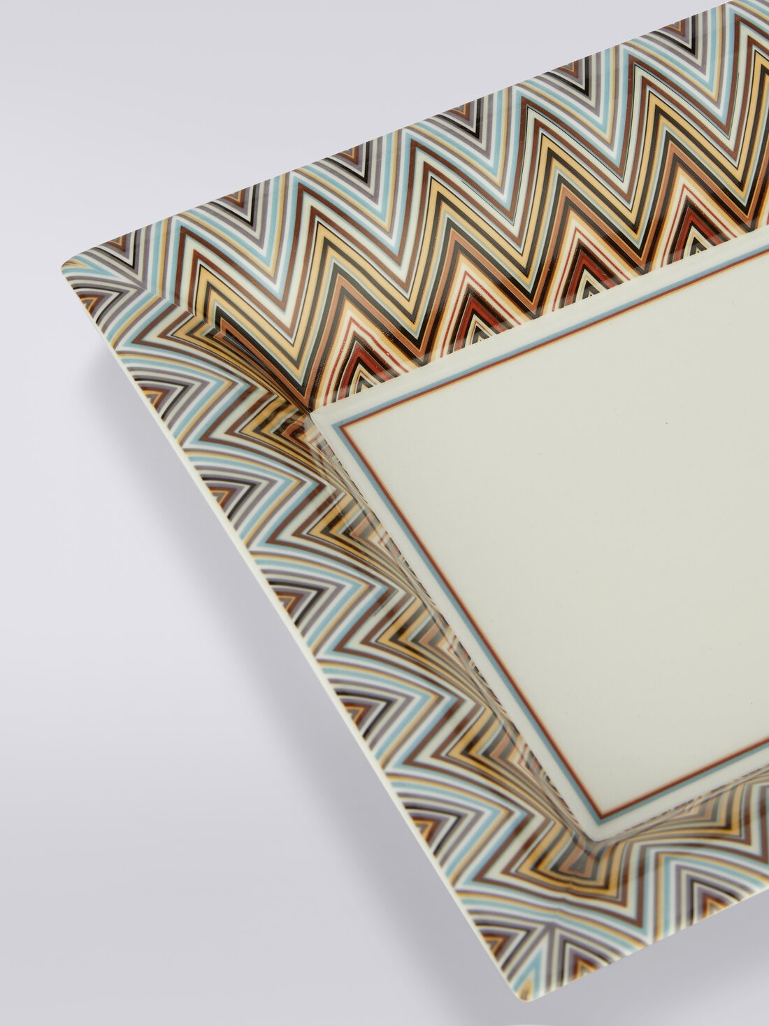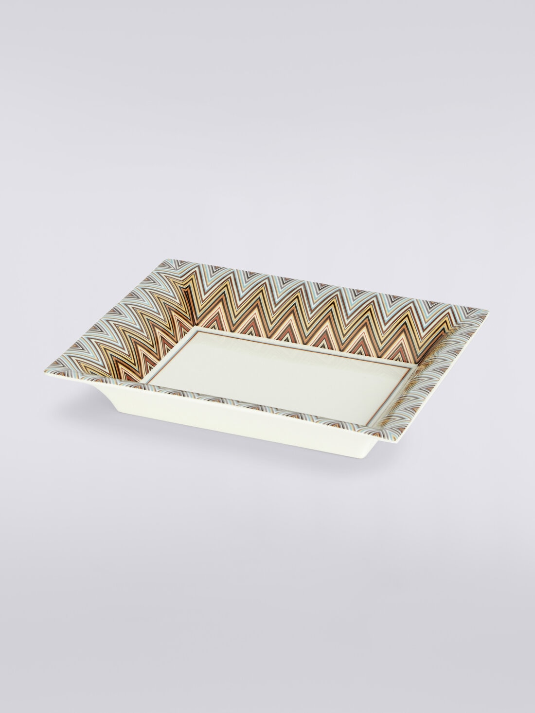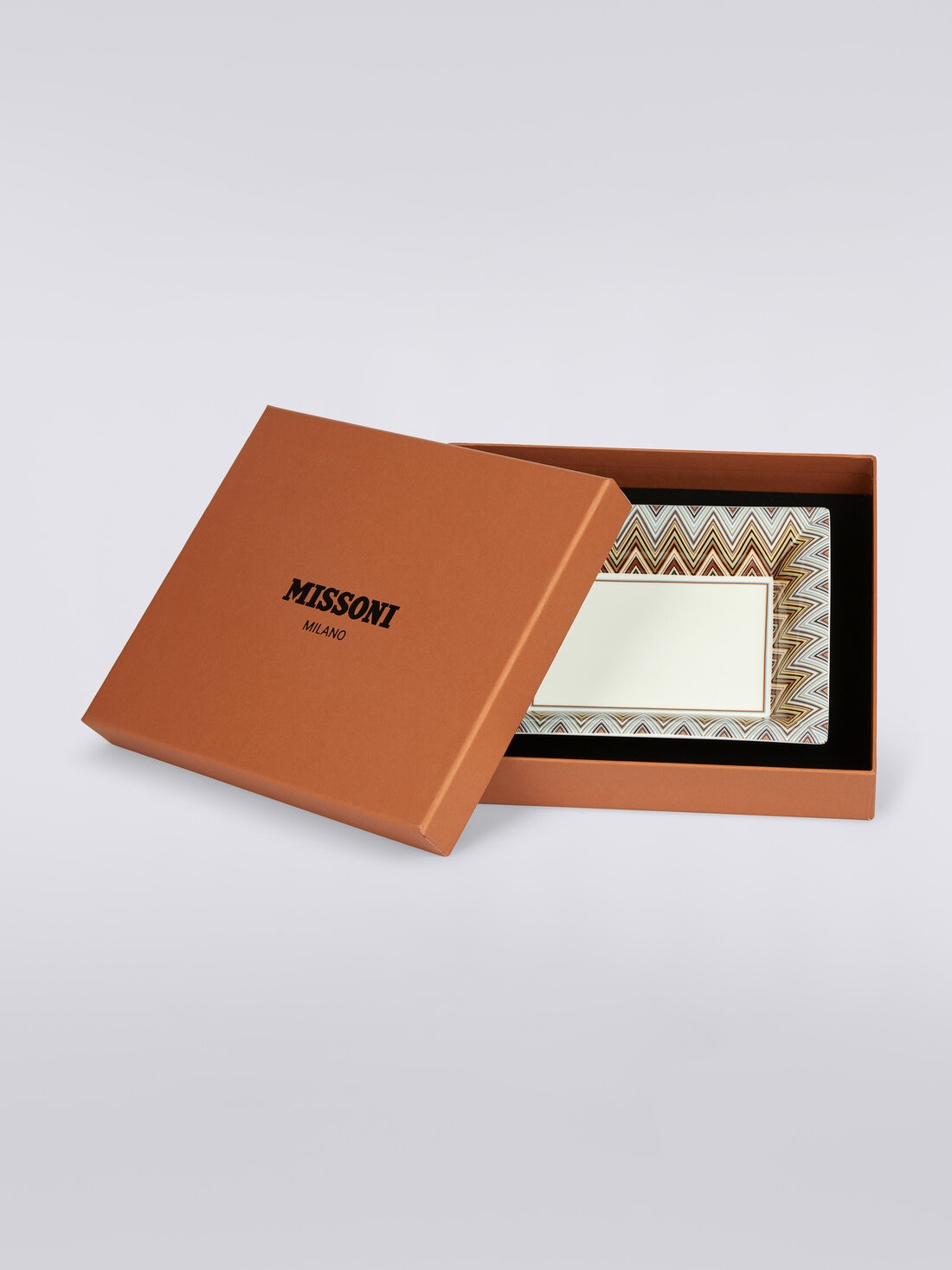 Perfecto para aportar un toque de color a cualquier hogar, el vaciabolsillos de 20x16 cm está fabricado en porcelana fina y adornada con el estampado Jarris, una refinada variación del icónico zigzag de Missoni.
