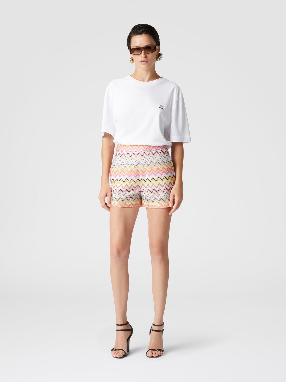 Un atrevido motivo en zigzag, que juega con el color y la mano de obra raschel en relieve, para los pantalones cortos de corte recto. Confeccionados en viscosa pura, estos pantalones cortos añadirán un toque de elegancia a cualquier look.