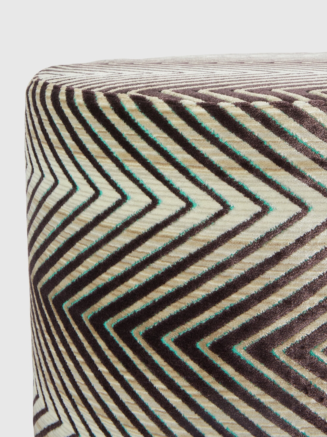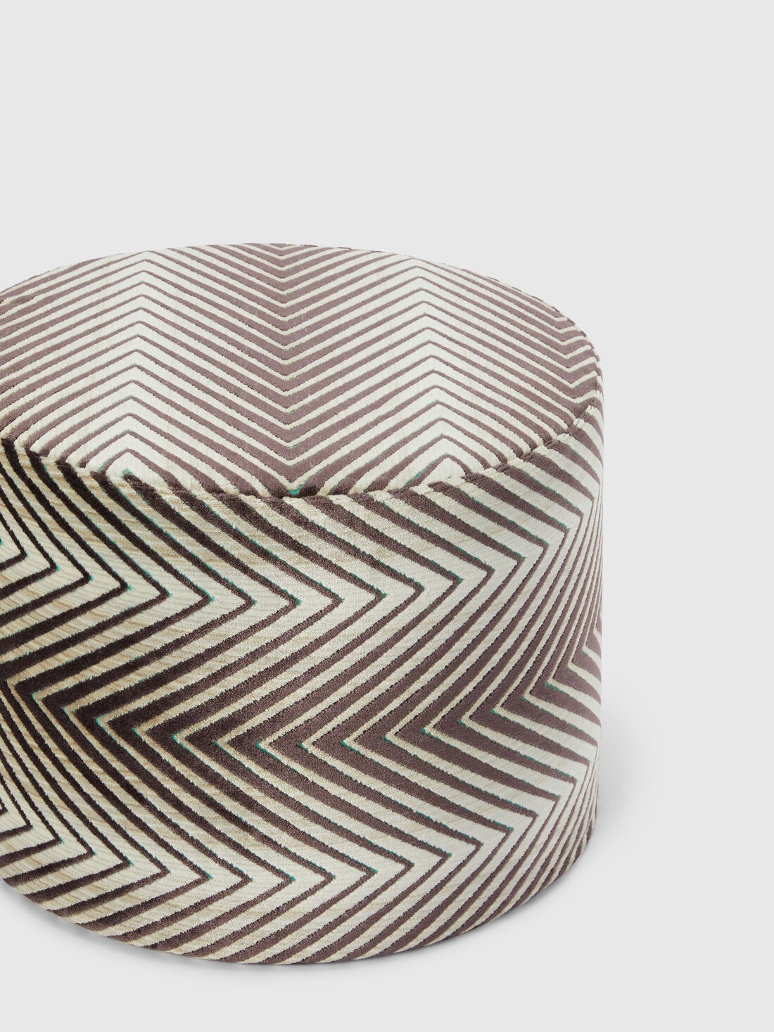 Un inédito motivo en zigzag con una sucesión casi hipnótica caracteriza el revestimiento de Ziggy, un puf cilíndrico de 40x30 cm. Un accesorio de innegable encanto con el que personalizar cada rincón de la zona de estar.