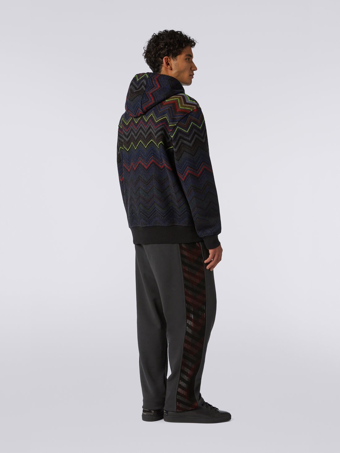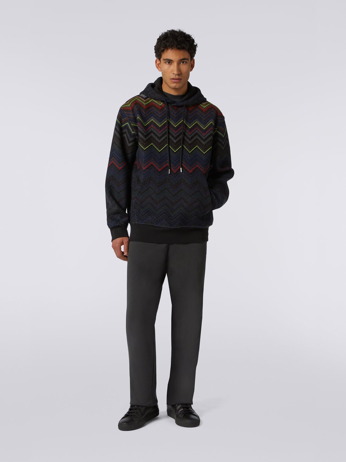 Un básico del street style por excelencia, la sudadera con capucha adquiere un toque inédito gracias al motivo de espigas. Así es como la sudadera con capucha de hombre se hace portavoz del ADN de Missoni Sport. Modelo firmado en colaboración con Mike Maignan.