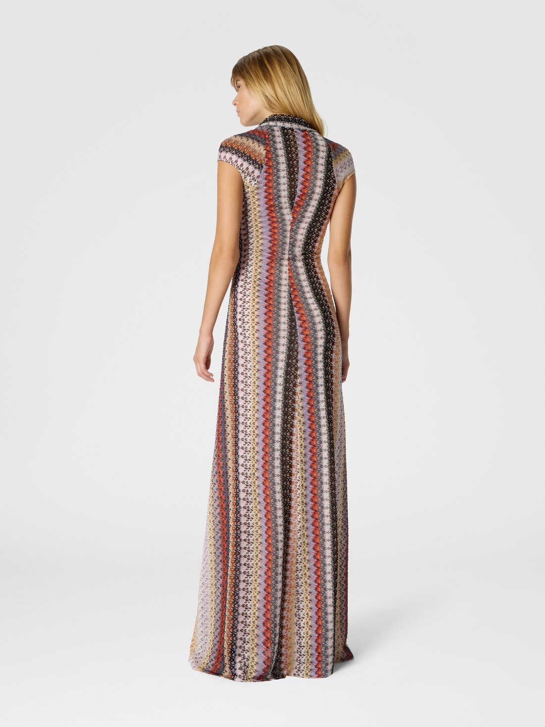 Un vestido de mujer sofisticado y elegante, realizado en precioso encaje raschel sobre base de tul perforado, enriquecido con delicados hilos lamé que aportan un toque de luz refinada. La silueta estilizada se ve realzada por el escote profundo y el nudo en la parte delantera, que define la cintura con naturalidad. Las mangas a media altura completan el diseño con equilibrio, perfecto para ocasiones de noche o ceremonias con gran encanto. En mezcla de viscosa, combina ligereza, confort y una elegancia atemporal.