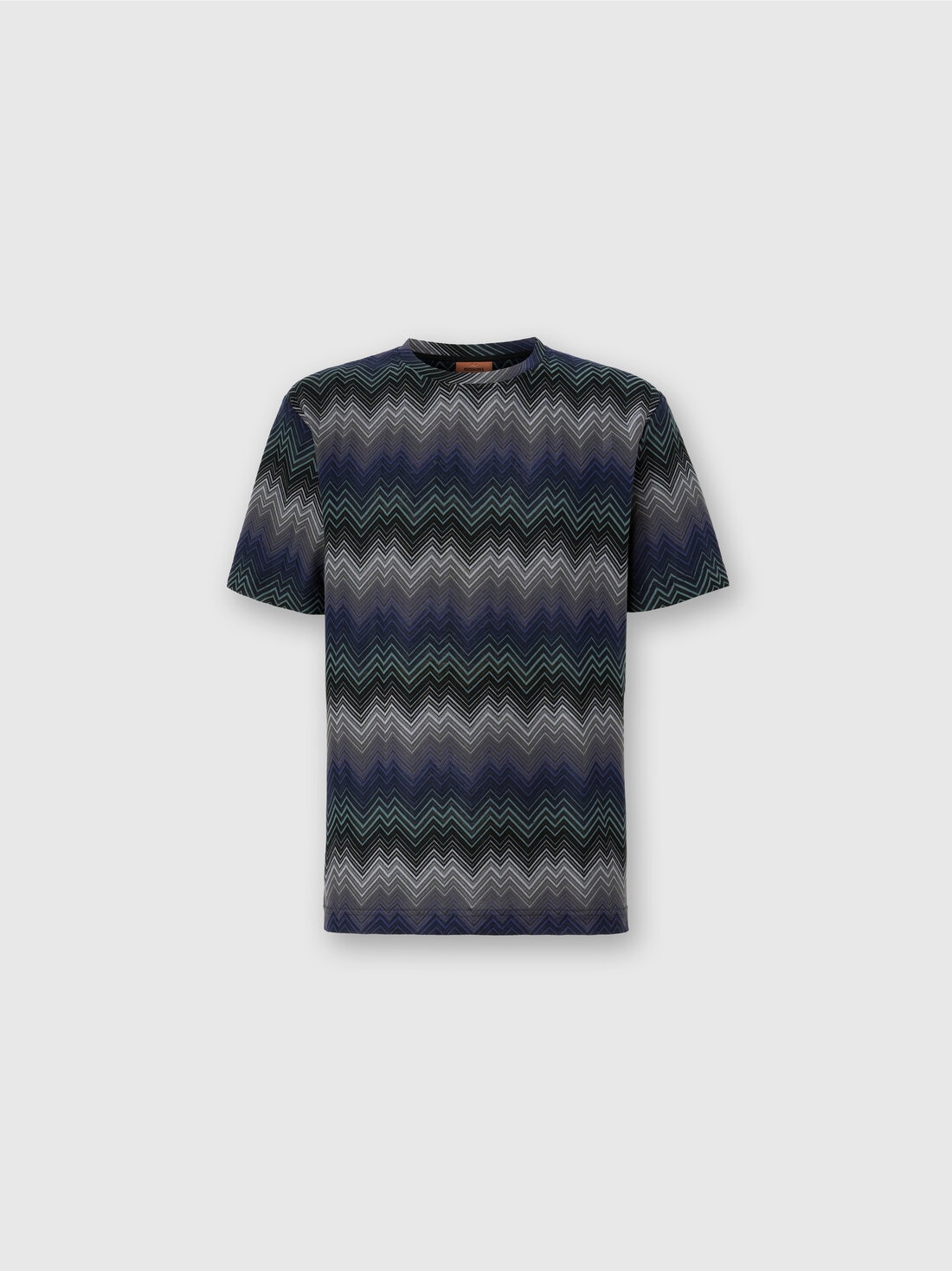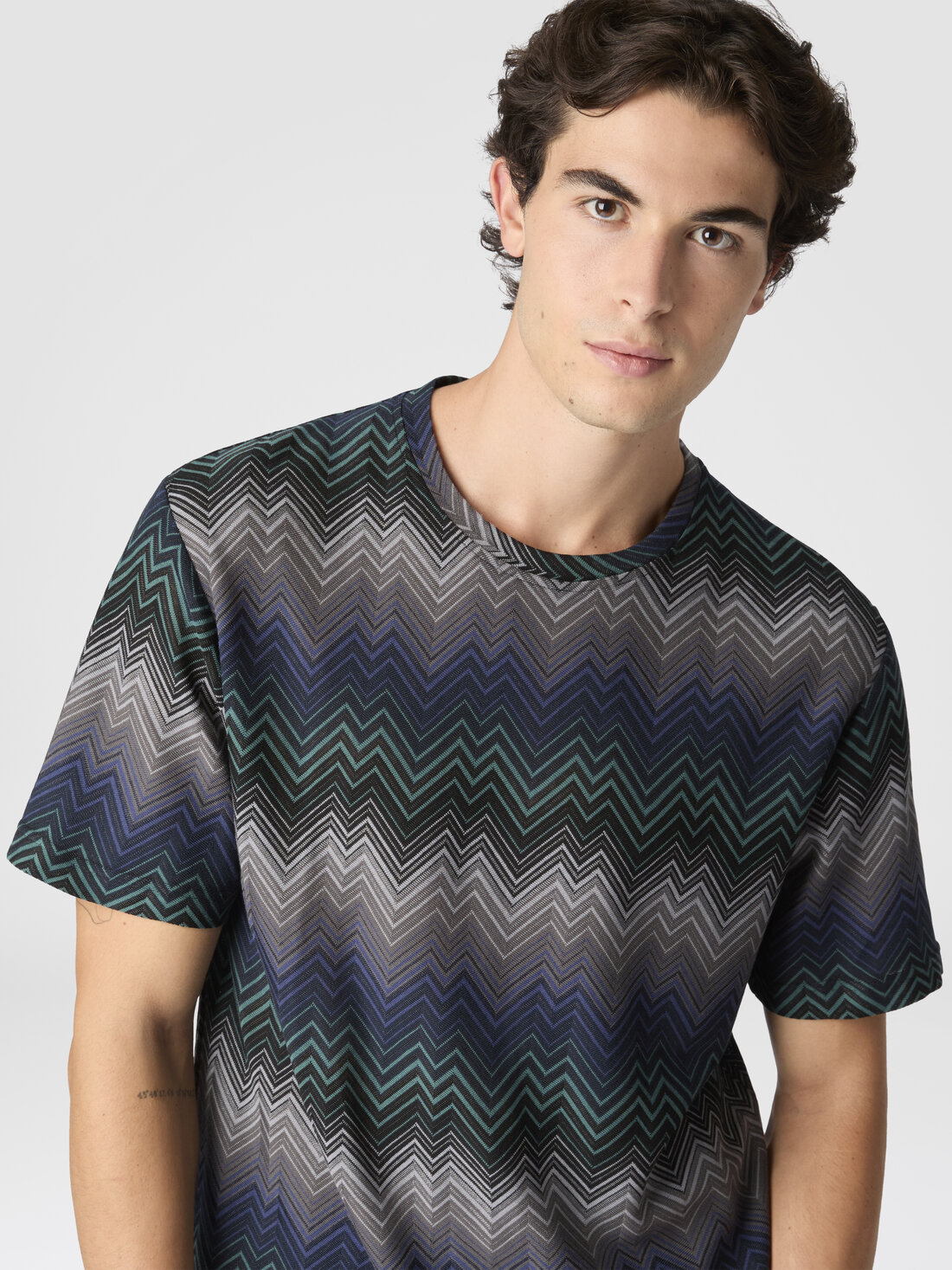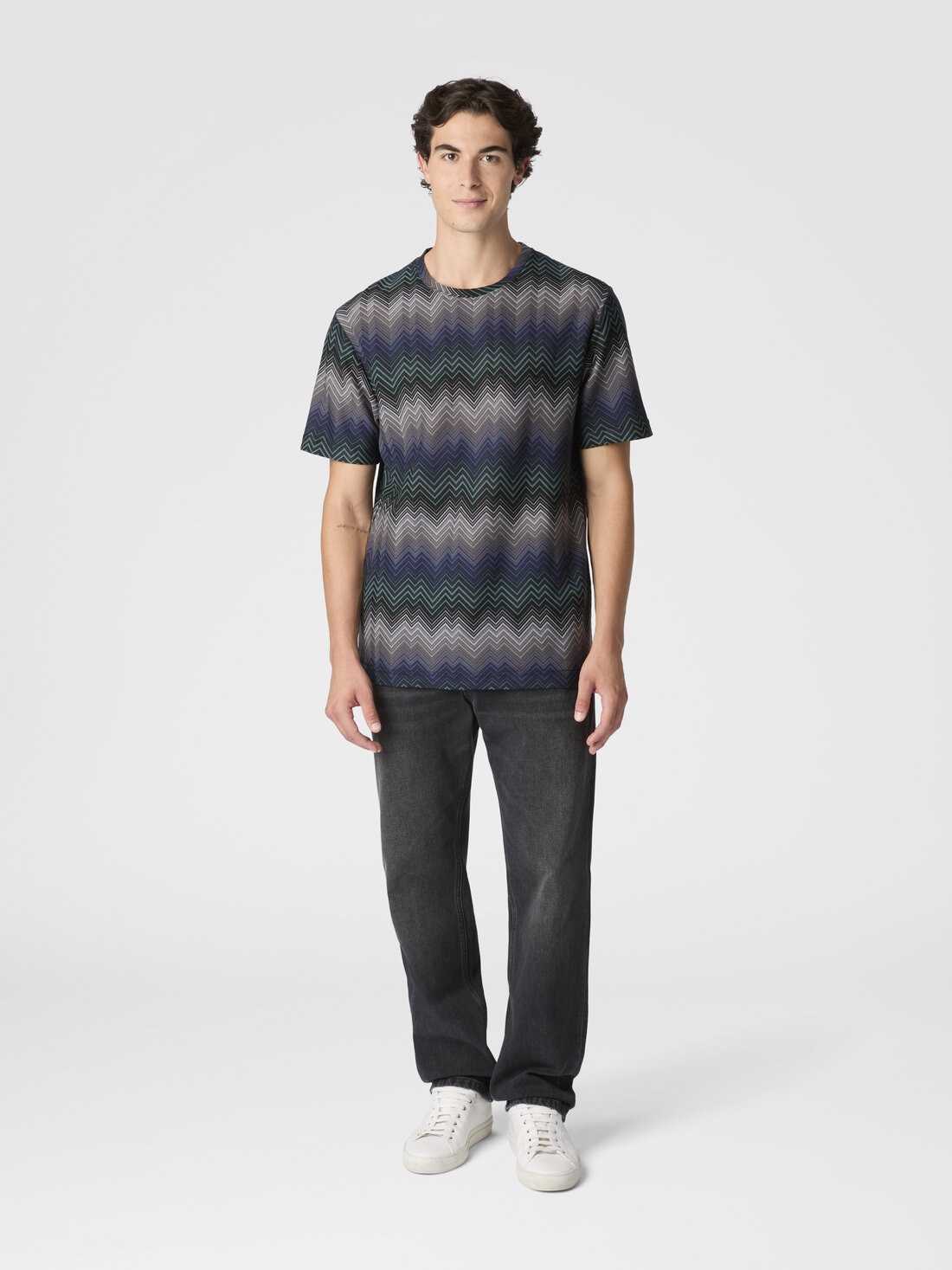 Camiseta de manga corta para hombre confeccionada en mezcla de algodón, con refinado trabajo raschel y motivo zig zag irregular, típico de Missoni. Una prenda que expresa la inconfundible identidad gráfica de la maison, uniendo textura cuidada y estilo contemporáneo.