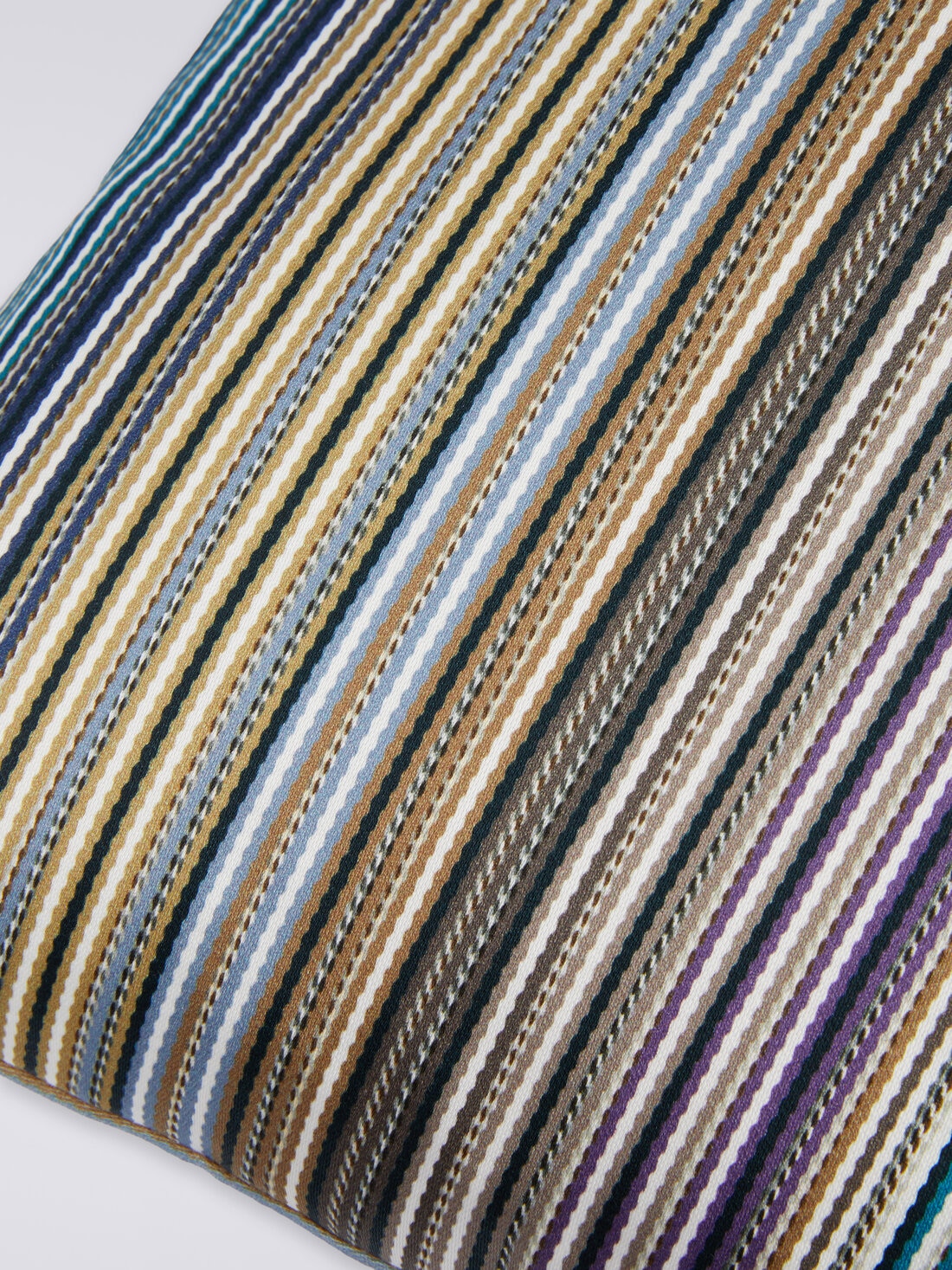 Lo que a primera vista parecería un simple motivo a rayas resulta ser, al observarlo más de cerca, una refinada interpolación de rayas onduladas y trazos. Así es como el cojín Jenkins de 40x40 cm, confeccionado en algodón puro, cobra protagonismo como refinado accesorio textil para el hogar.