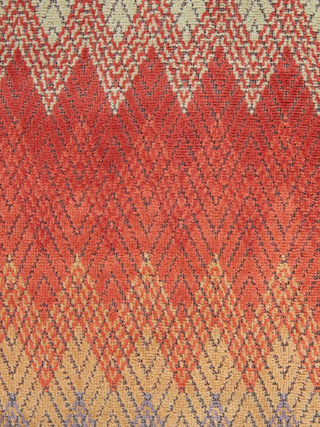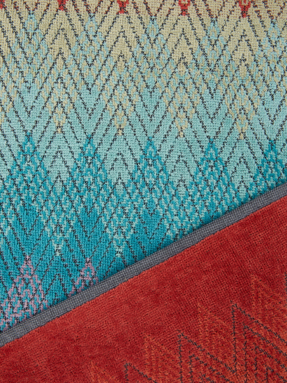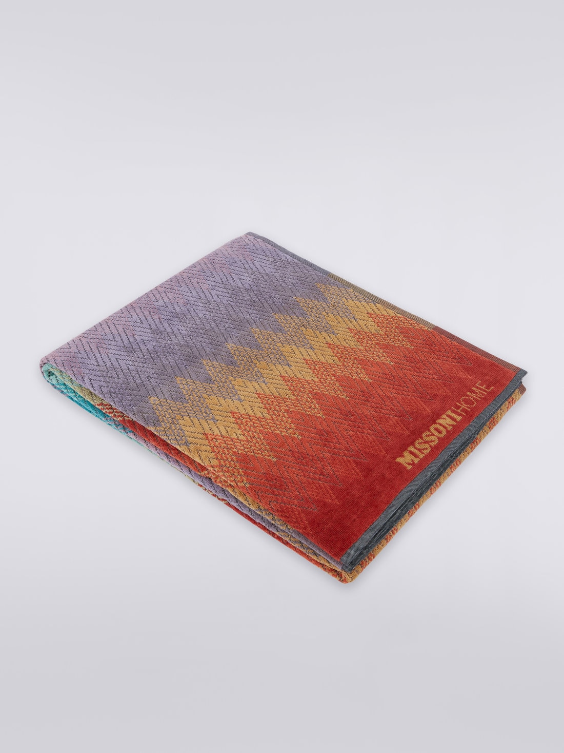 El cromatismo del motivo en zigzag, superpuesto a la confección de espigas, es el sello distintivo de la línea de rizo Yaco. Refinamiento, elegancia y el inconfundible rasgo de Missoni para una sofisticada y refinada toalla de playa de 100x180 cm.