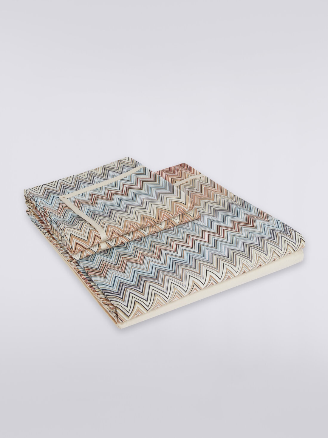 El juego de cama doble de tres piezas John ofrece un juego de puro algodón flameado, que lleva el refinado estilo de Missoni a la habitación más íntima de la casa. Incluye una sábana bajera y una encimera de 250x280 cm y un par de fundas de almohada, que expresan una elegante interpretación del carácter icónico de Missoni.