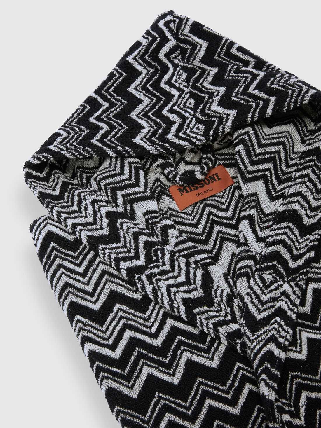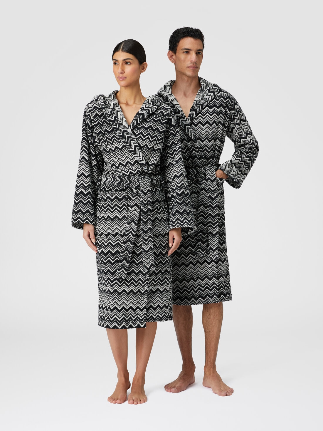 Incluso en el cuarto de baño, MissoniHome siempre aporta un toque de lujo original: prueba de ello es el albornoz Keith de rizo de algodón con capucha, cinturón y bolsillos de parche, al que el motivo de espigas añade un aire preciado.