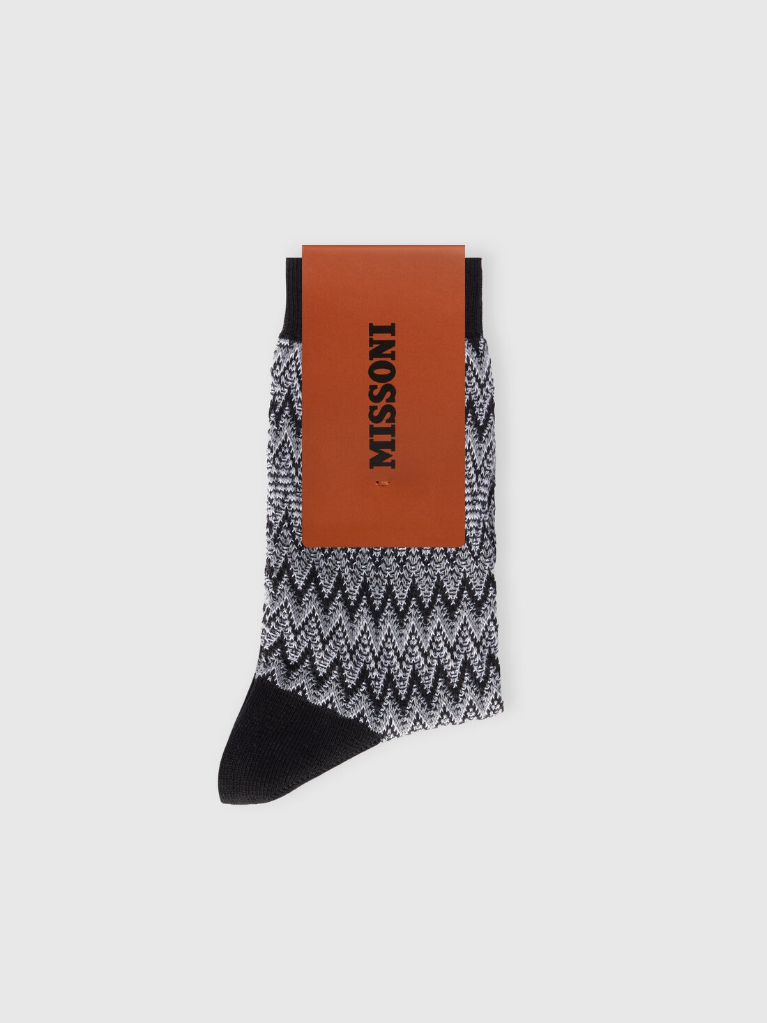 El icónico diseño en chevron y los detalles en color liso caracterizan estos calcetines medianos para mujer de mezcla de algodón firmados por Missoni, un accesorio perfecto para experimentar con el estilo diario.