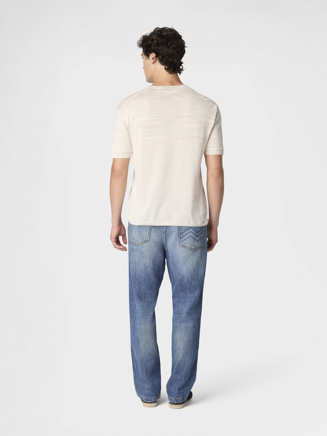 Realizada en algodón flameado mercerizado, esta camiseta de hombre de manga corta con cuello redondo se distingue por su tacto suave y el brillo del tejido, resultado de un proceso que realza la calidad y el resplandor de las fibras. Una prenda esencial, definida por una elegancia sobria y contemporánea al más puro estilo Missoni.