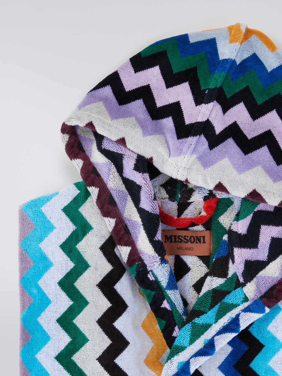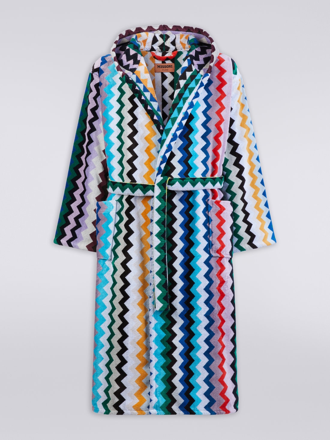 Con el nuevo albornoz Carlie, MissoniHome añade otra pieza a su icónico estilo de vida. Lo hace gracias a un estudio inédito del zigzag, propuesto en versión vertical con diferentes fondos, para dar un ritmo original a la superficie de rizo de algodón.