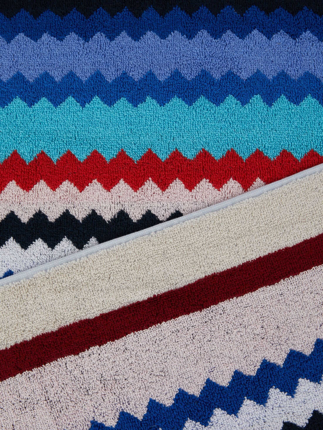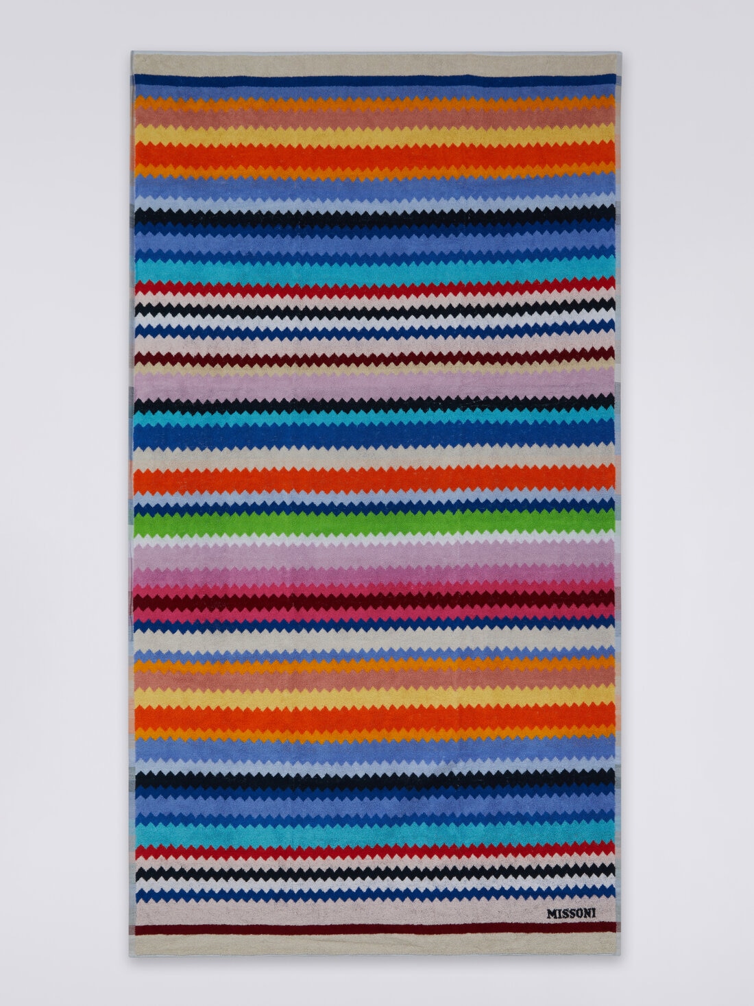 Enriquecer el total look playero con una colorida toalla "muy Missoni" es un juego del que siempre se sale ganador, gracias a la toalla de playa Cecil de 100x180 cm. Confeccionado en rizo de algodón aterciopelado, este artículo está adornado con un motivo de espigas y personalizado con la inscripción del logotipo.