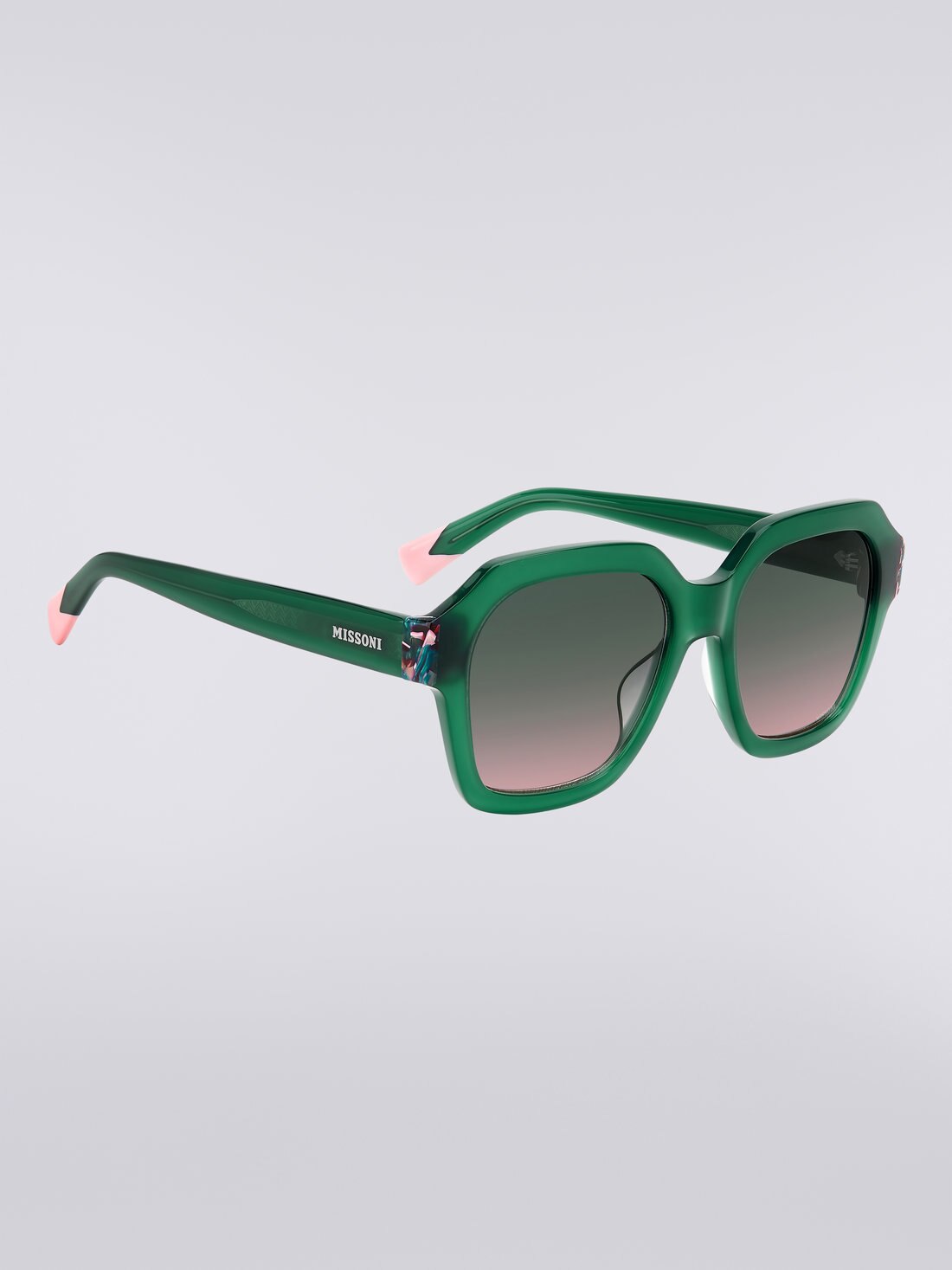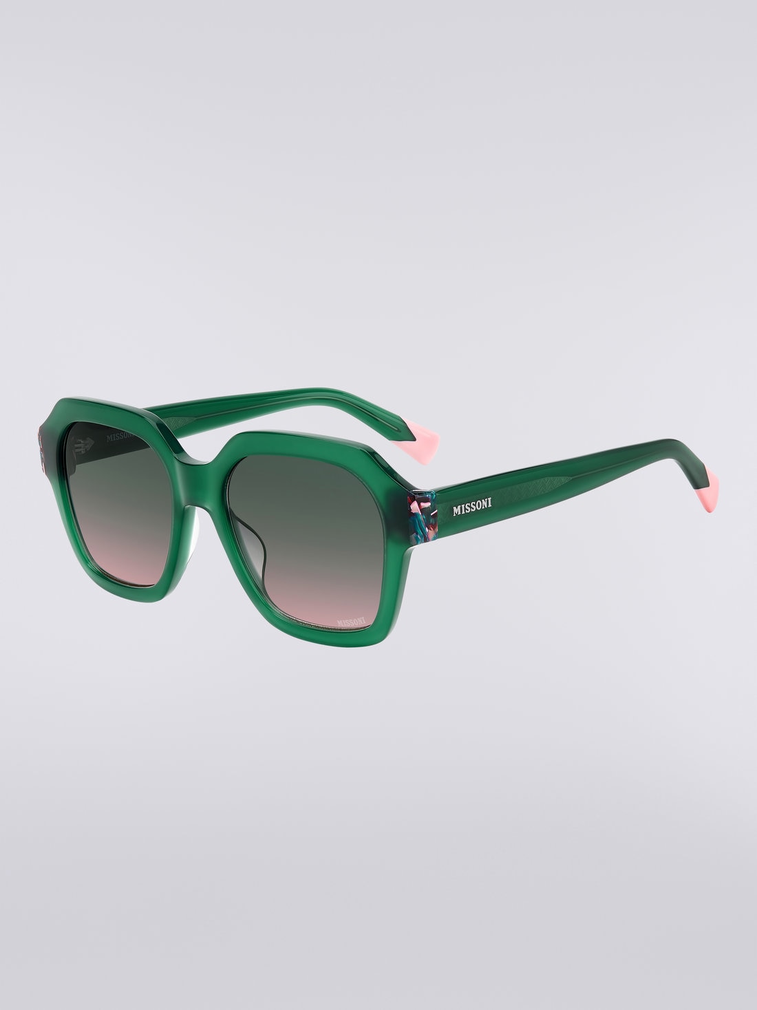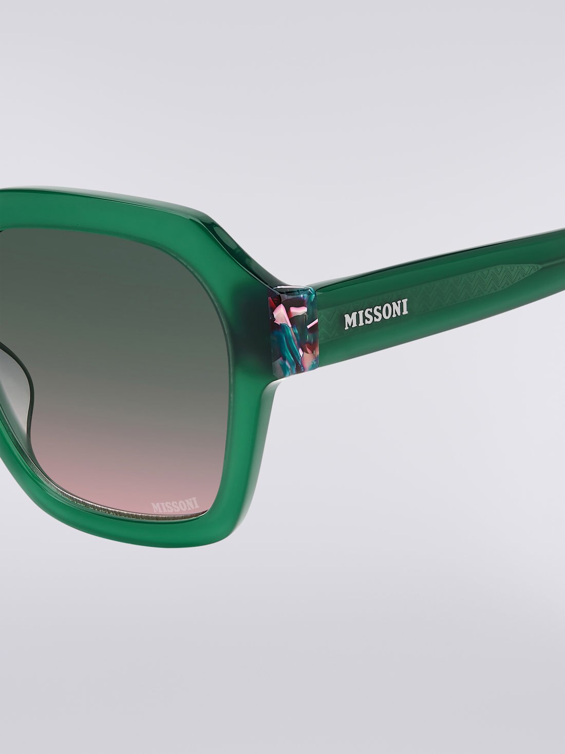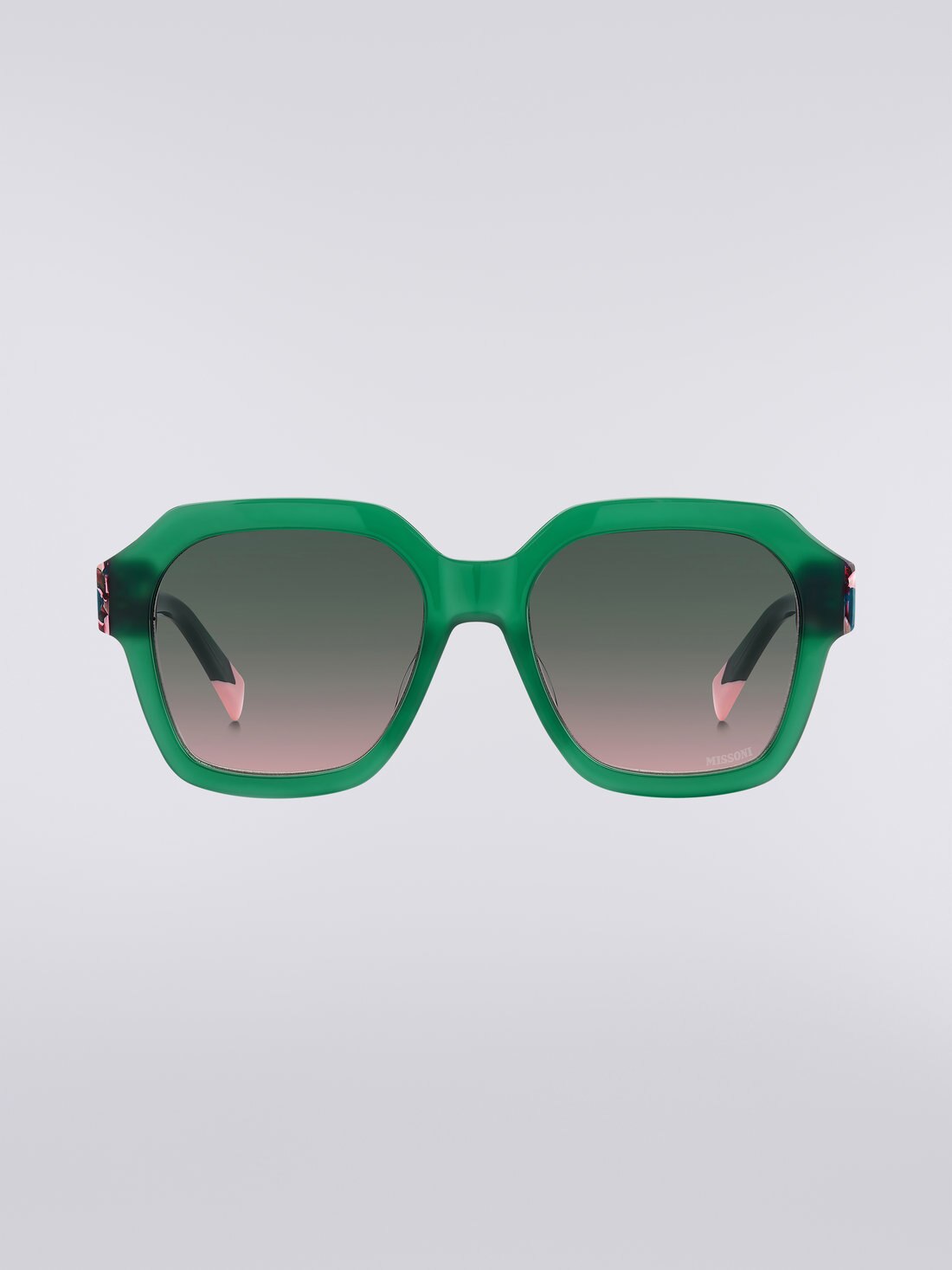 Las combinaciones cromáticas de aire ecléctico se dan la mano con los motivos gráficos atrevidos y distintivos de Missoni en la colección de gafas Missoni Seasonal. Modelos inconfundibles de acetato destinados a atraer todas las miradas, decorados con acetato en los extremos de las patillas y los icónicos terminales en zigzag tono sobre tono. Estas gafas de sol presentan una silueta geométrica que no pasará desapercibida. Patillas con interior metálico en zigzag y logotipo estampado en caliente. Logotipo grabado con láser en la lente.