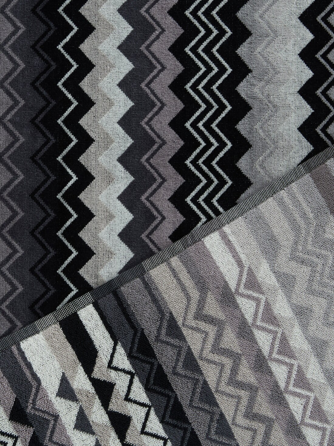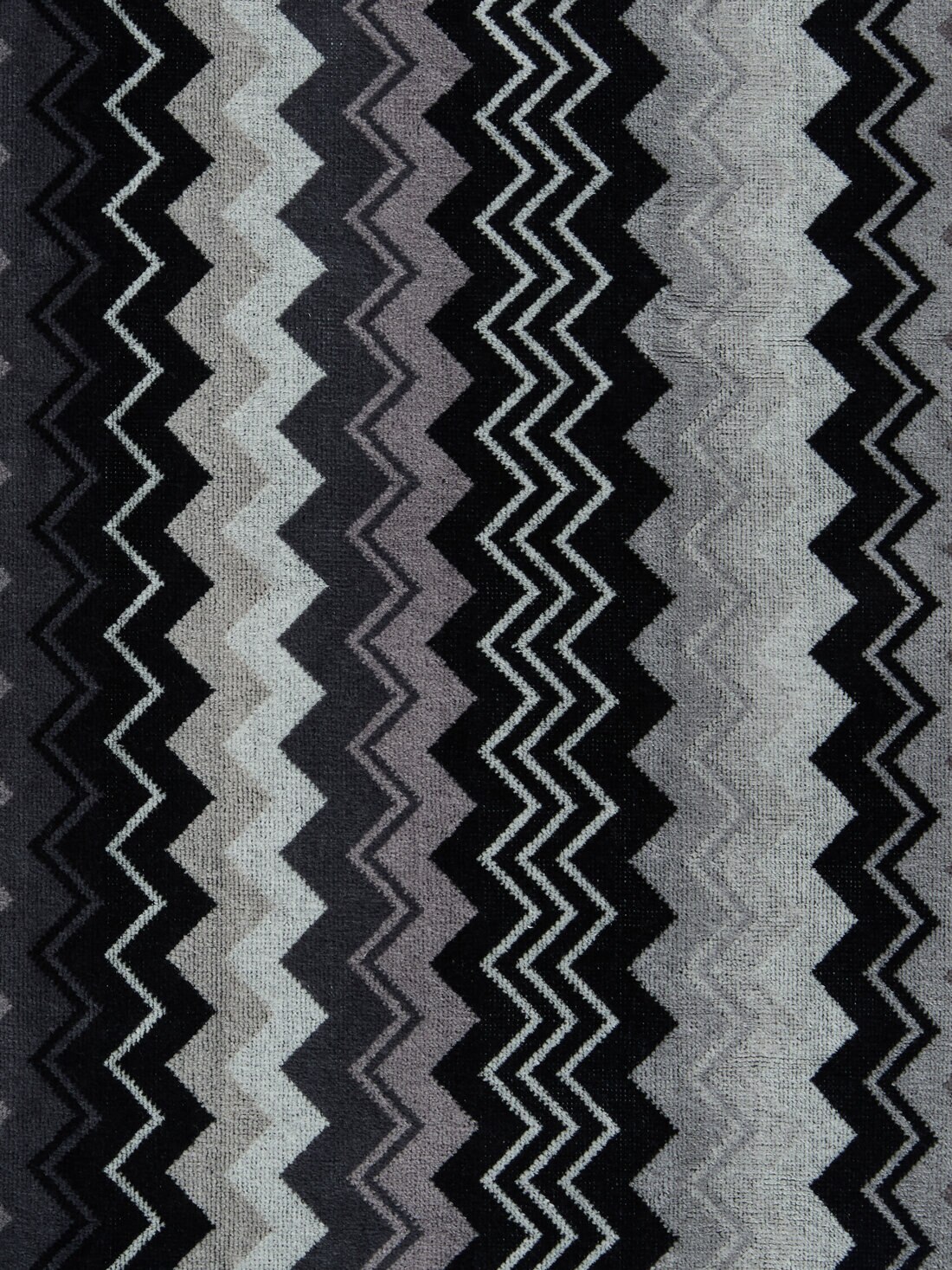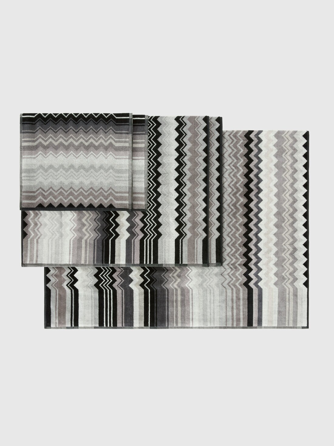 El juego de 5 toallas Giacomo es la quintaesencia del estilo Missoni: aquí, la calidad del rizo de algodón aterciopelado se une a la definición del estampado de espigas, que se sumerge en los bordes a rayas para animar este juego precioso y atemporal.