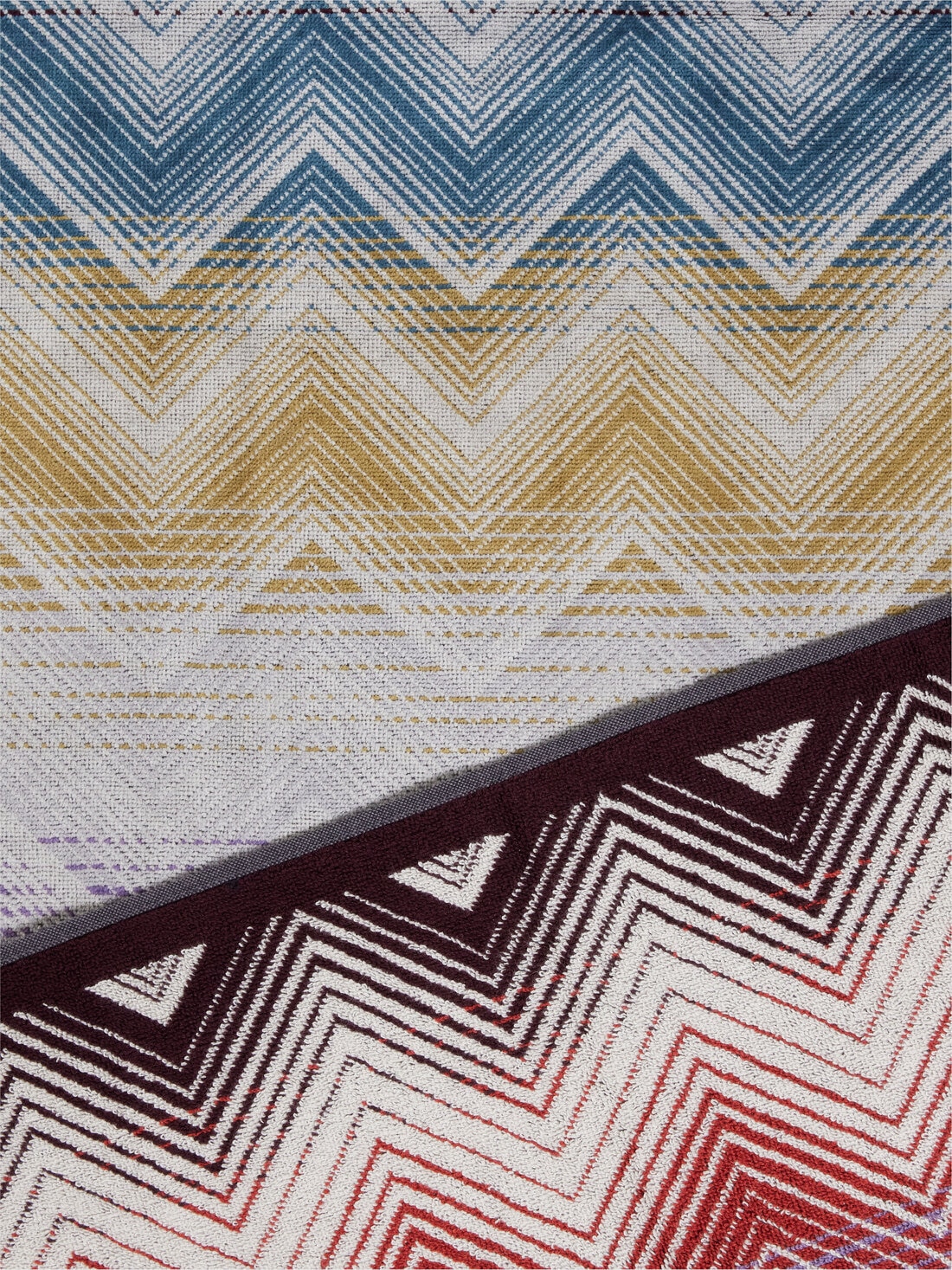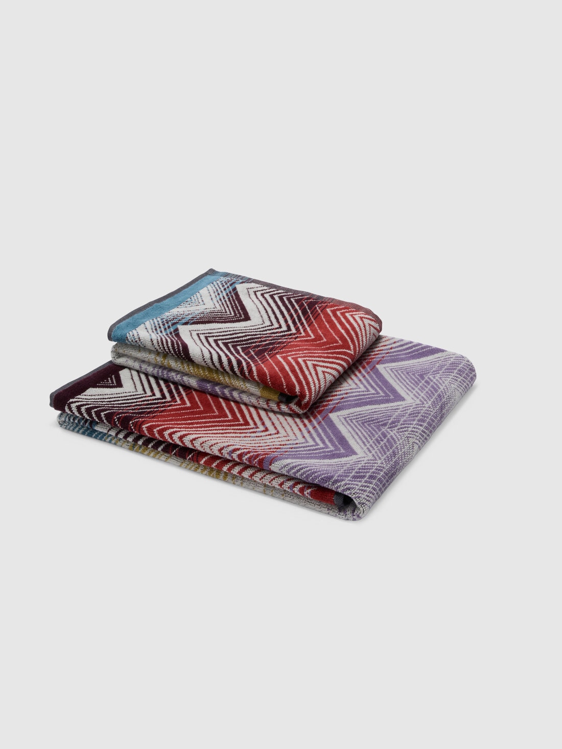 Un estampado zig zag que recuerda al estilo Missoni distingue el set de baño Marea, hecho de 100% algodón. Elegante y refinado, este set de dos piezas combina confort y diseño, llevando un toque de clase y frescura a los cuartos de baño. Perfecto para quienes buscan calidad y estilo sin compromisos.