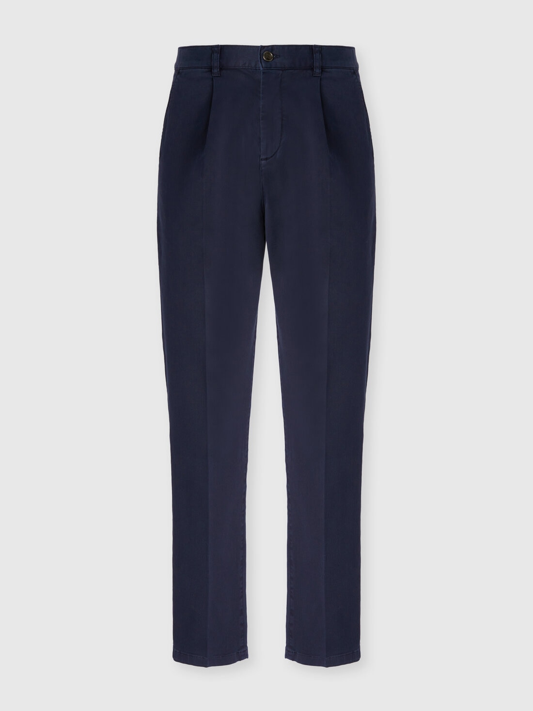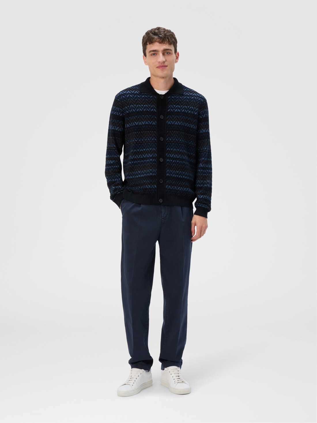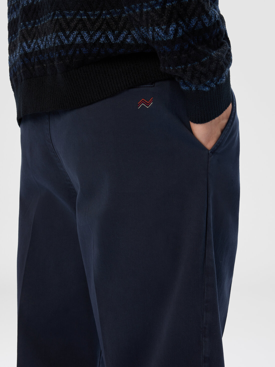 Los clásicos pantalones chino de hombre en algodón adquieren, gracias a la intervención de Missoni, un toque contemporáneo que los transforma en el complemento perfecto para el look diario. Caracterizados por el fit relajado y el pequeño monograma bordado en contraste, presentan pinzas en la cintura y prácticos bolsillos laterales.