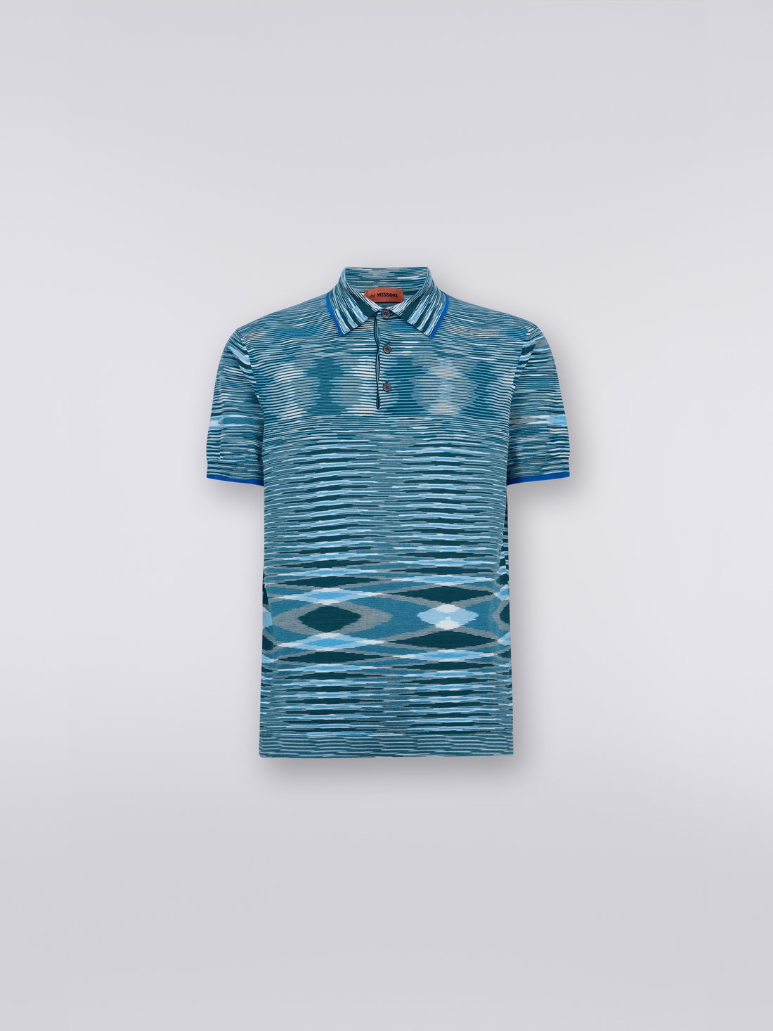 Missoni utiliza el reconocible motivo flameado para dar un toque inédito al clásico polo de algodón de manga corta para hombre. Ajuste regular, cierre con tres botones, cuello y sisas con ribetes en contraste completan el diseño.