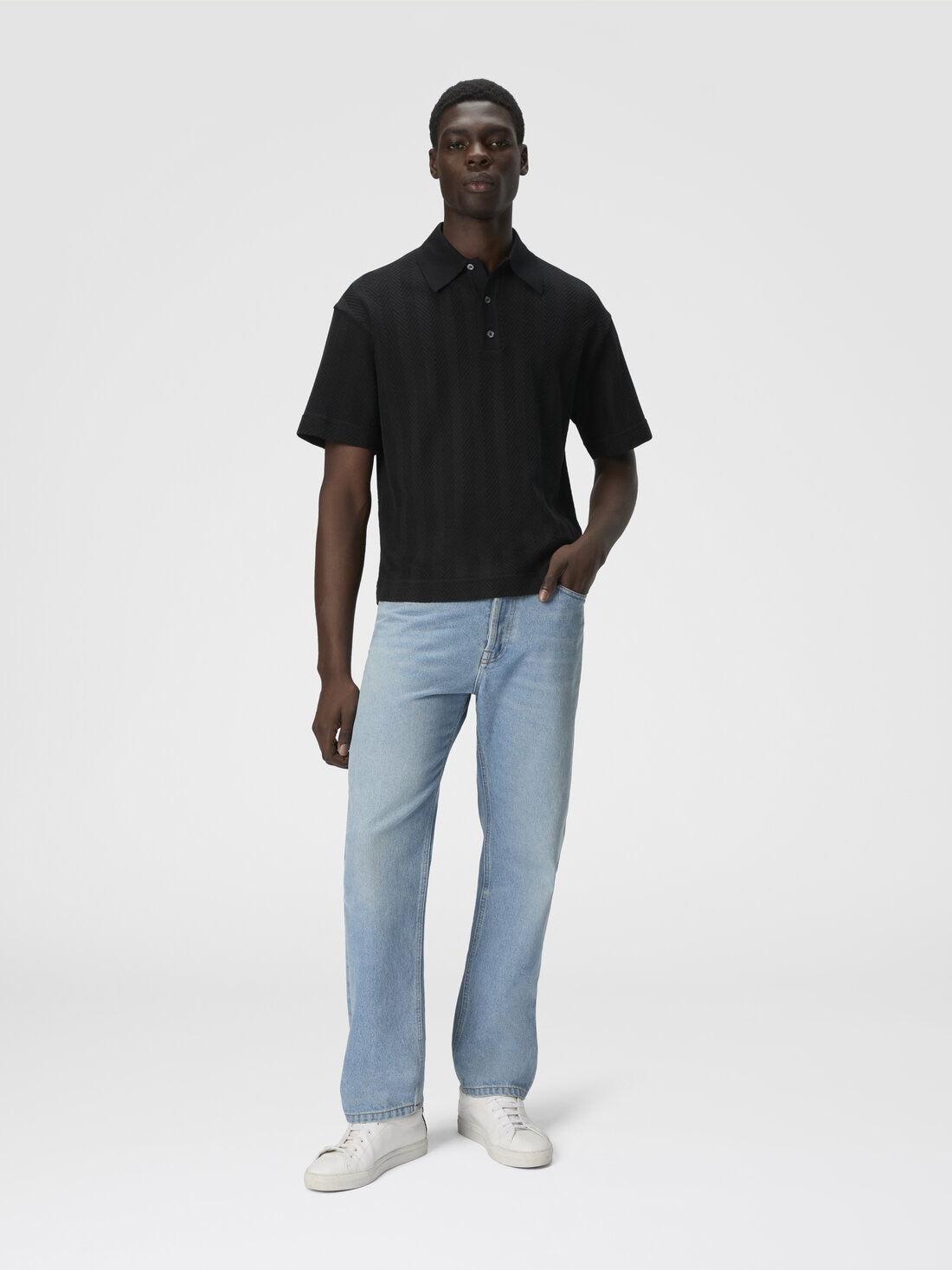 El corte cuadrado de este polo de algodón y viscosa, combinado con el refinado zig zag tono sobre tono, lo convierten en una prenda versátil y contemporánea. La construcción relajada y el patrón elegante crean una combinación de estilo moderno y comodidad.