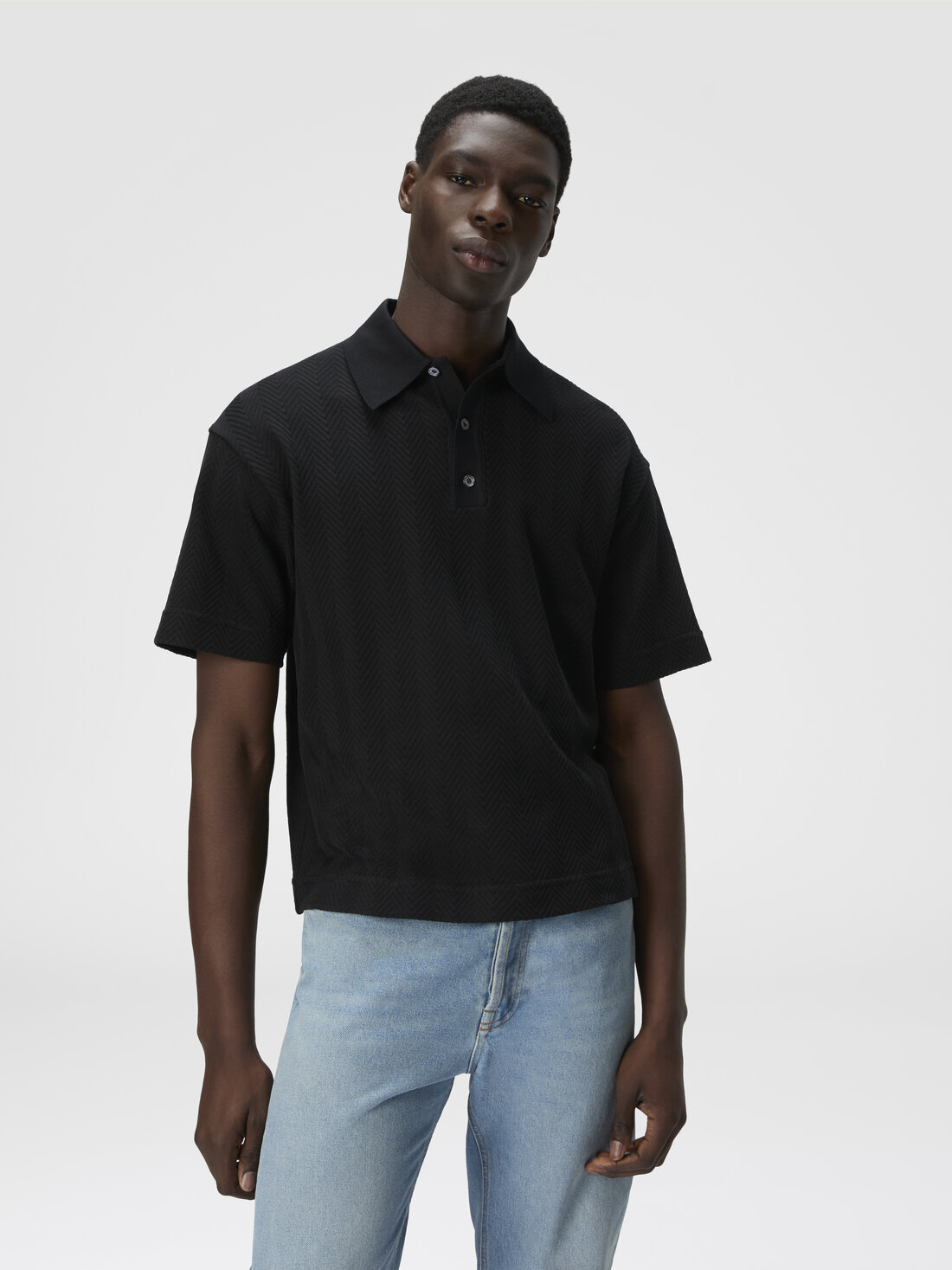Polo de algodón y viscosa con zigzag tono sobre tono