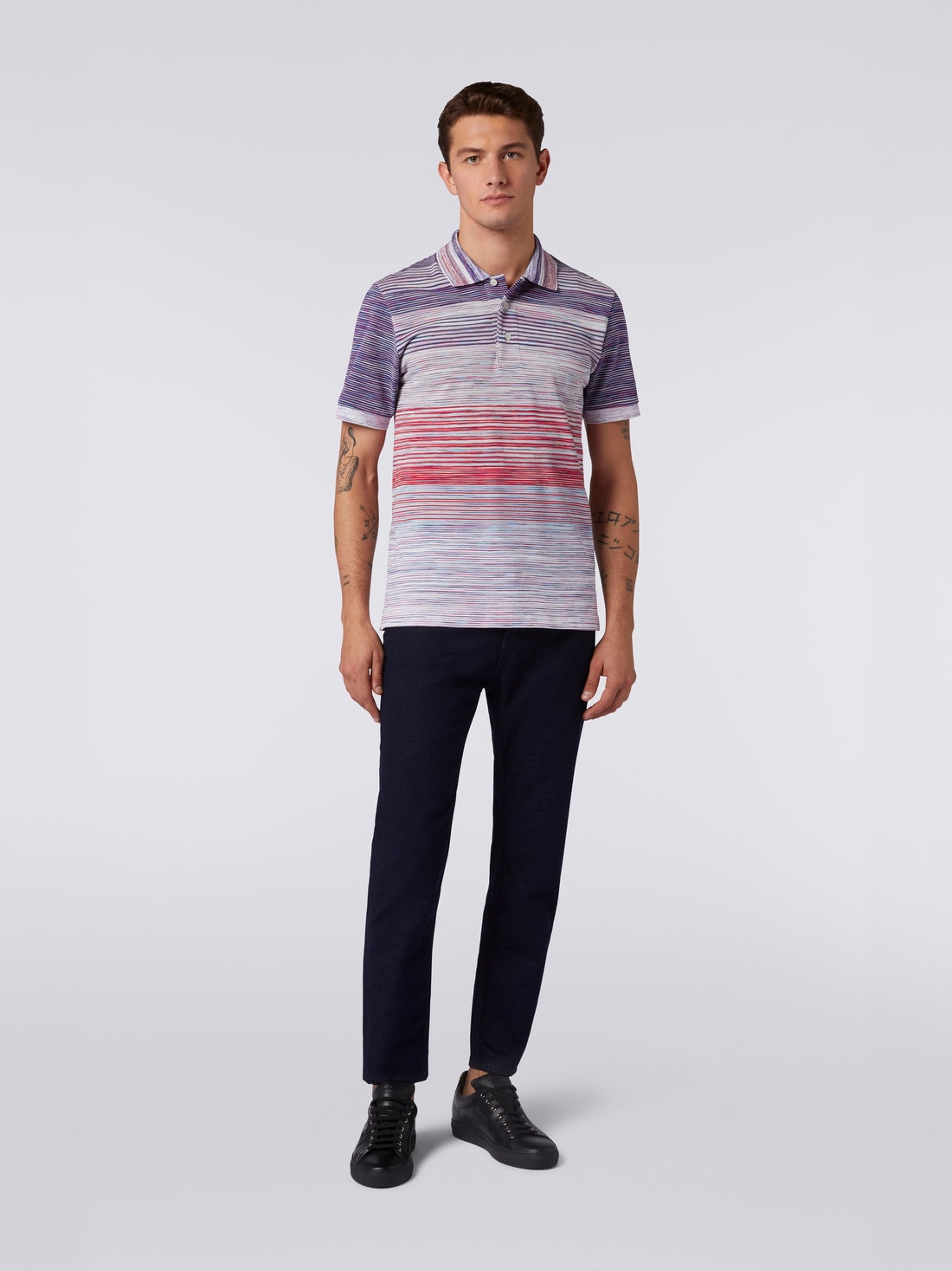 Un flameado decolorado enriquece gráficamente el piqué de algodón puro de este polo de manga corta para hombre. El modelo clásico de ajuste regular presenta un cuello de tres botones y sisas de canalé.