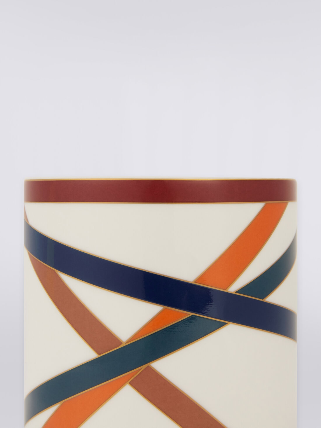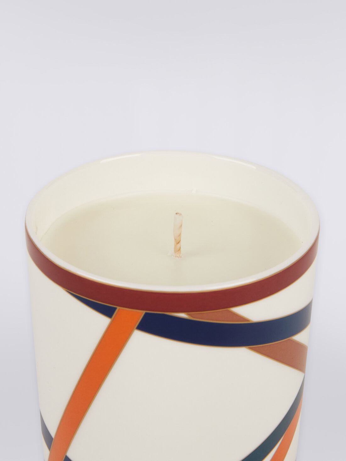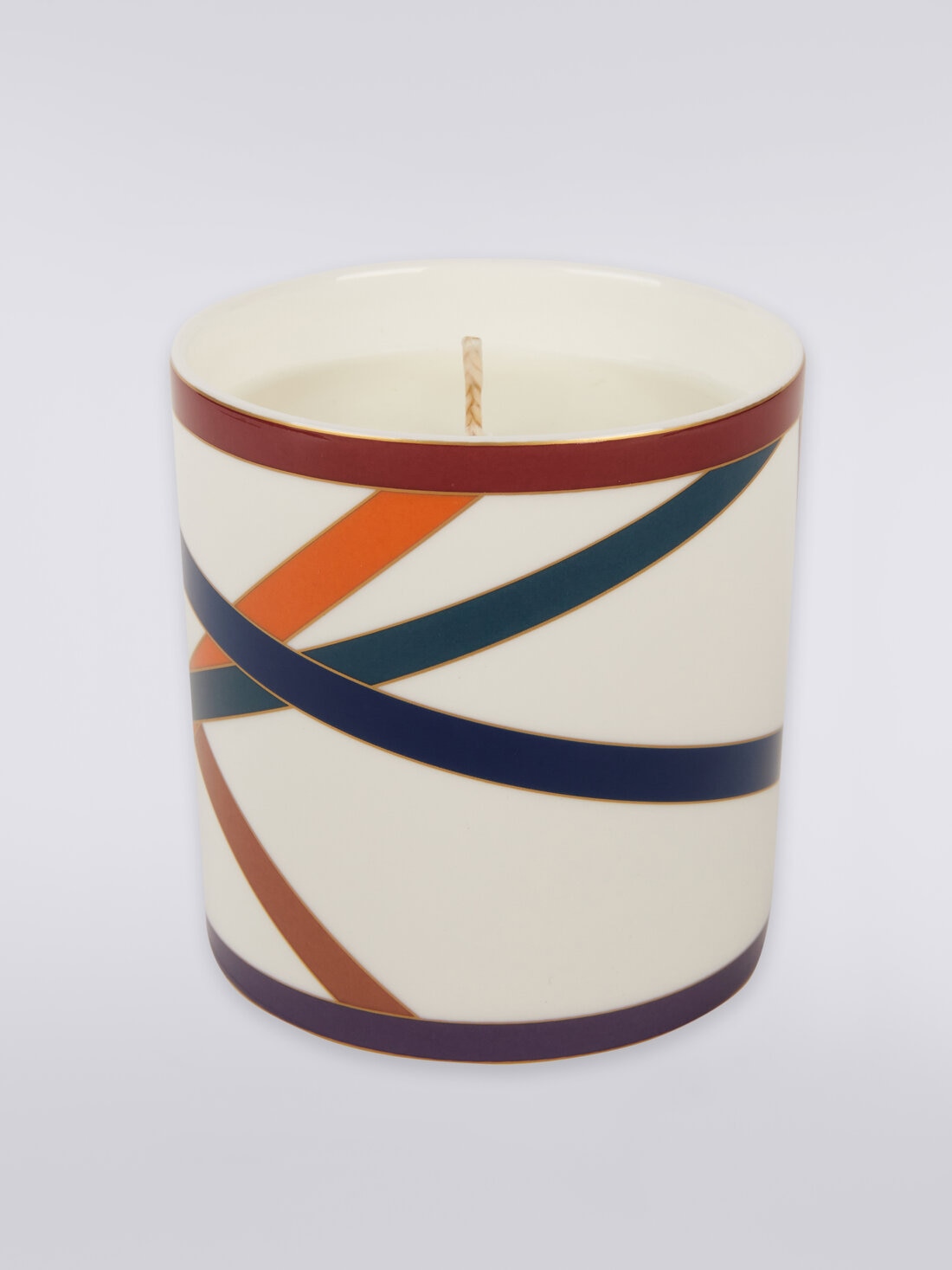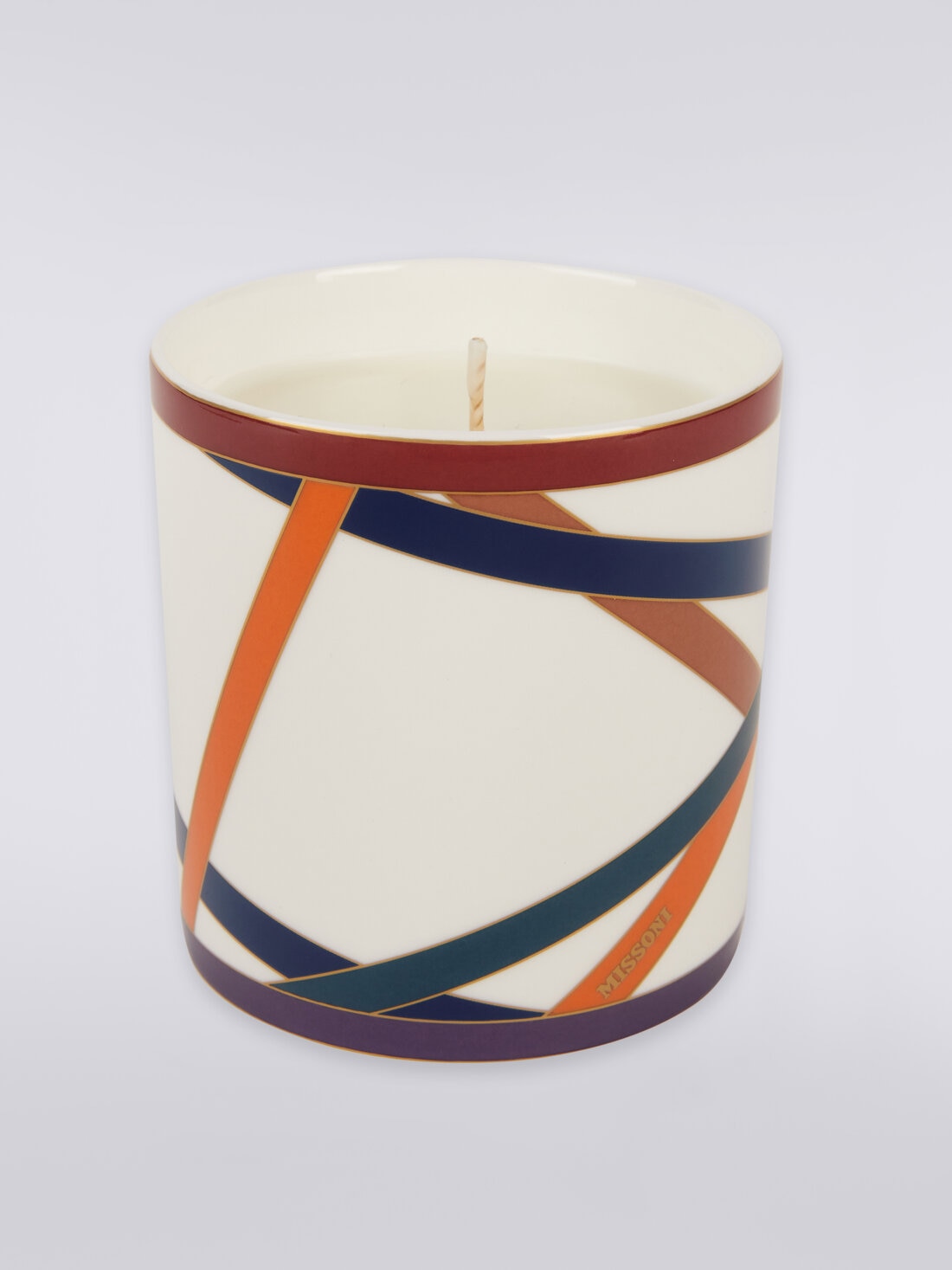 Una elegante fusión de diseño y atmósfera envolvente. La vela aromática Nastri, guardada en un refinado recipiente de porcelana, está decorada con un dinámico entrelazado de cintas en colores vibrantes, una expresión de la inconfundible estética de Missoni. Con un diámetro de 8,5 cm y una altura de 9 cm, esta vela es el accesorio perfecto para enriquecer cualquier ambiente con un toque de estilo y una fragancia sofisticada.