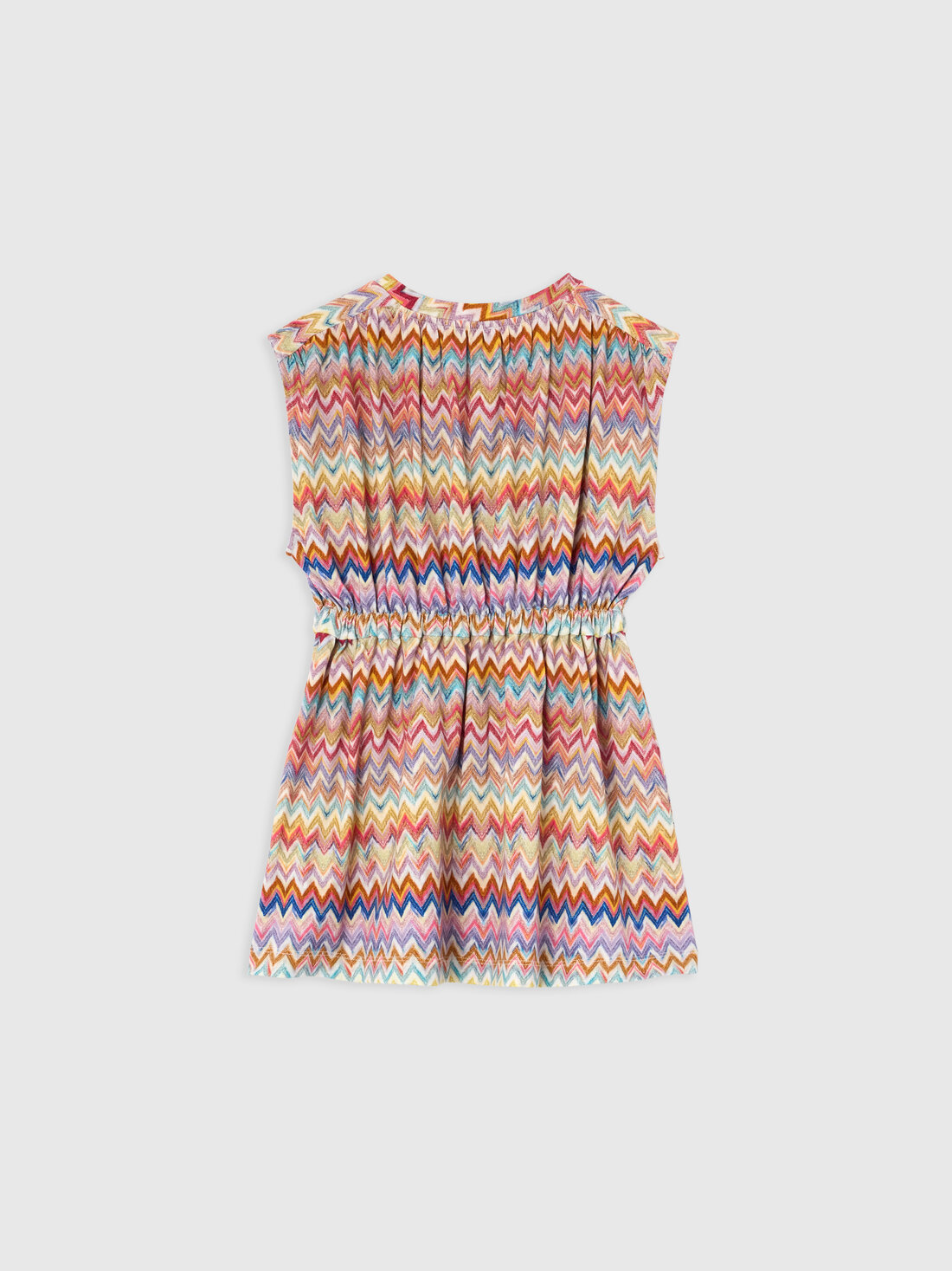 El motivo icónico de la maison cobra vida también en la moda infantil: este vestido corto sin mangas en 100 % algodón se caracteriza por el dinámico dibujo zig zag y el logotipo estampado, expresión de un estilo inmediatamente reconocible.