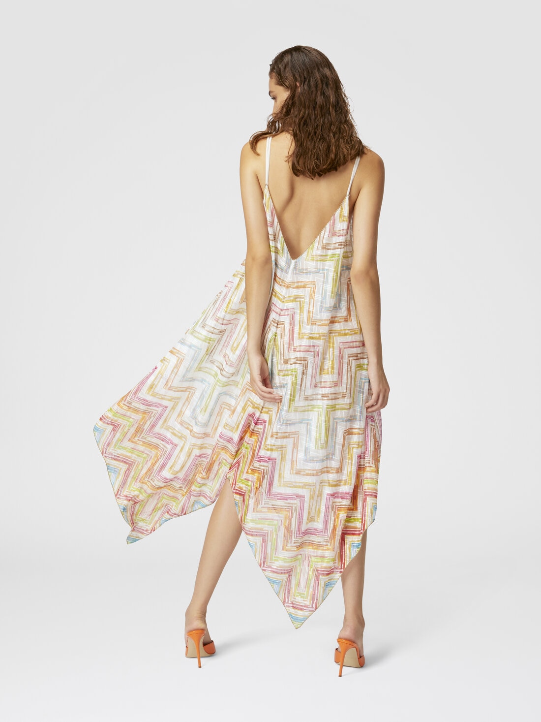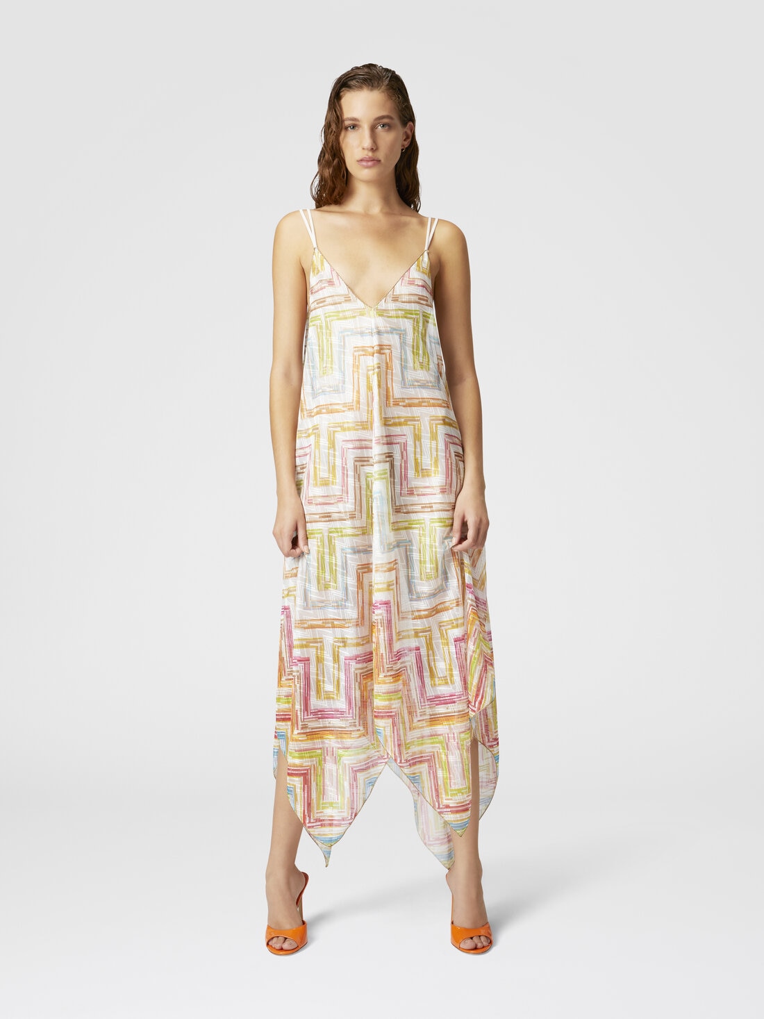 Vestido largo de tul con estampado, confeccionado con procesado raschel para una textura ligera y delicada. El escote en V aporta un toque elegante, mientras que el dobladillo del pañuelo da movimiento y fluidez al diseño, creando una prenda refinada y versátil.
