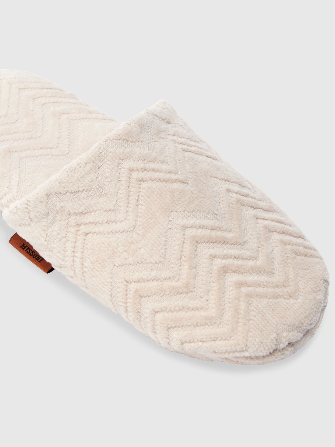 Las pantuflas Chalk en 100% algodón ofrecen un confort incomparable gracias a su textura suave y agradable al tacto. El motivo chevron, distintivo del estilo Missoni, las convierte en ideales para quienes desean un estilo elegante incluso en casa.