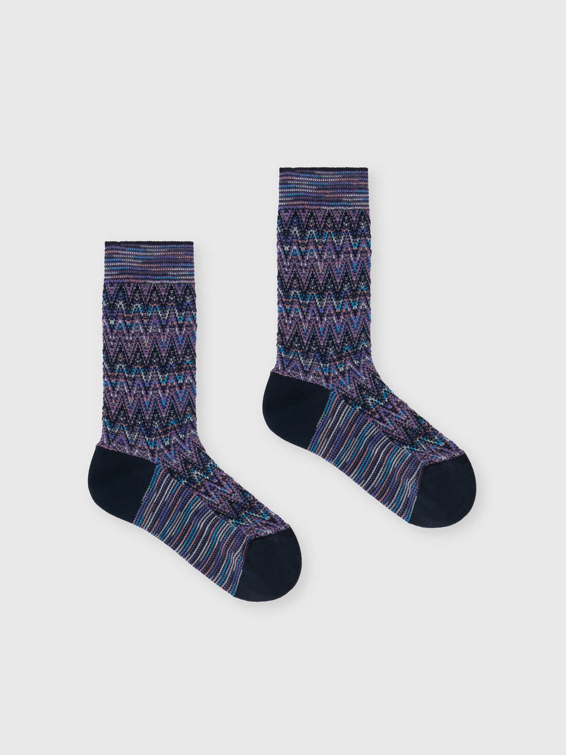 Un toque de estilo que no debe perderse, los calcetines medianos para mujer son el acento final en el look. Sobre todo si están firmados por Missoni, que los anima con su inconfundible chevron.
