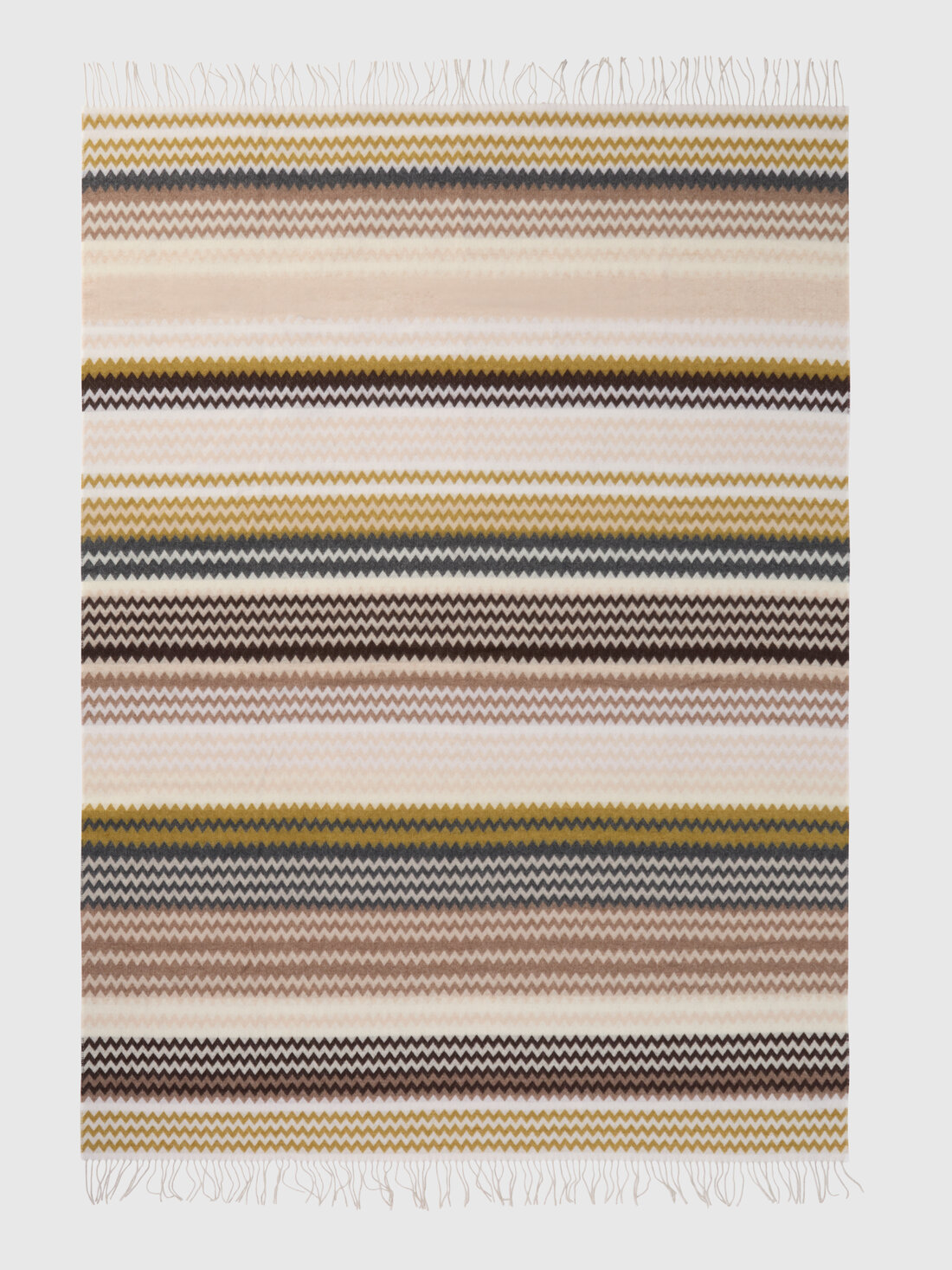 Humbert, la manta en mezcla de lana de 130x190 cm con bordes deshilachados, representa la nueva identidad que propone MissoniHome para la zona de estar. Su clásico motivo en zigzag se presenta como el emblema icónico que transforma el espacio, aportando un toque de elegancia atemporal al hogar.