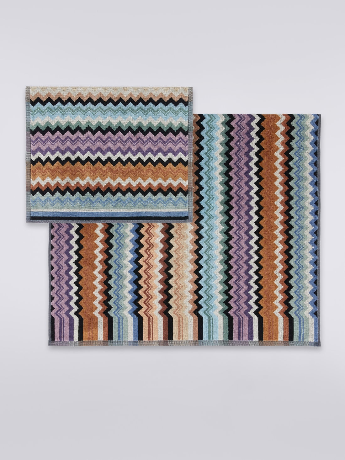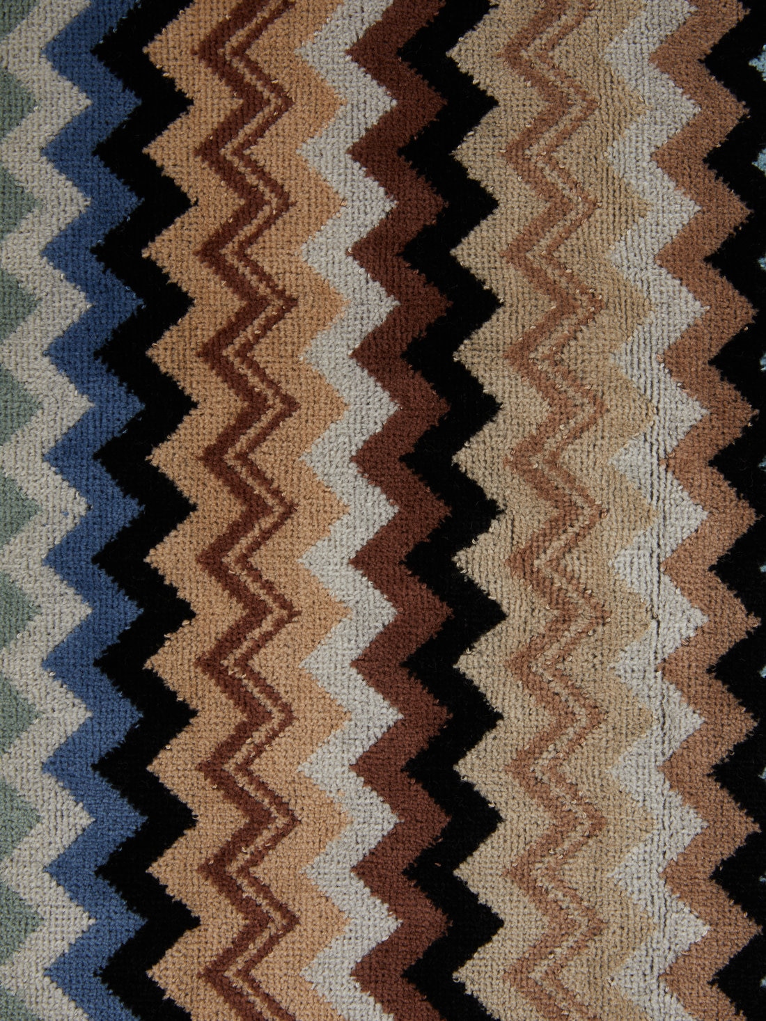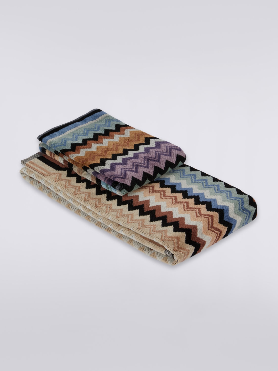 No solo los estampados han escrito su historia, haciéndola inconfundible. Quienes conocen MissoniHome saben también que es la calidad superlativa de su ropa de hogar lo que marca la diferencia. Como el juego de dos toallas de baño Adam, de rizo de algodón con motivo de espigas y bordes a rayas.