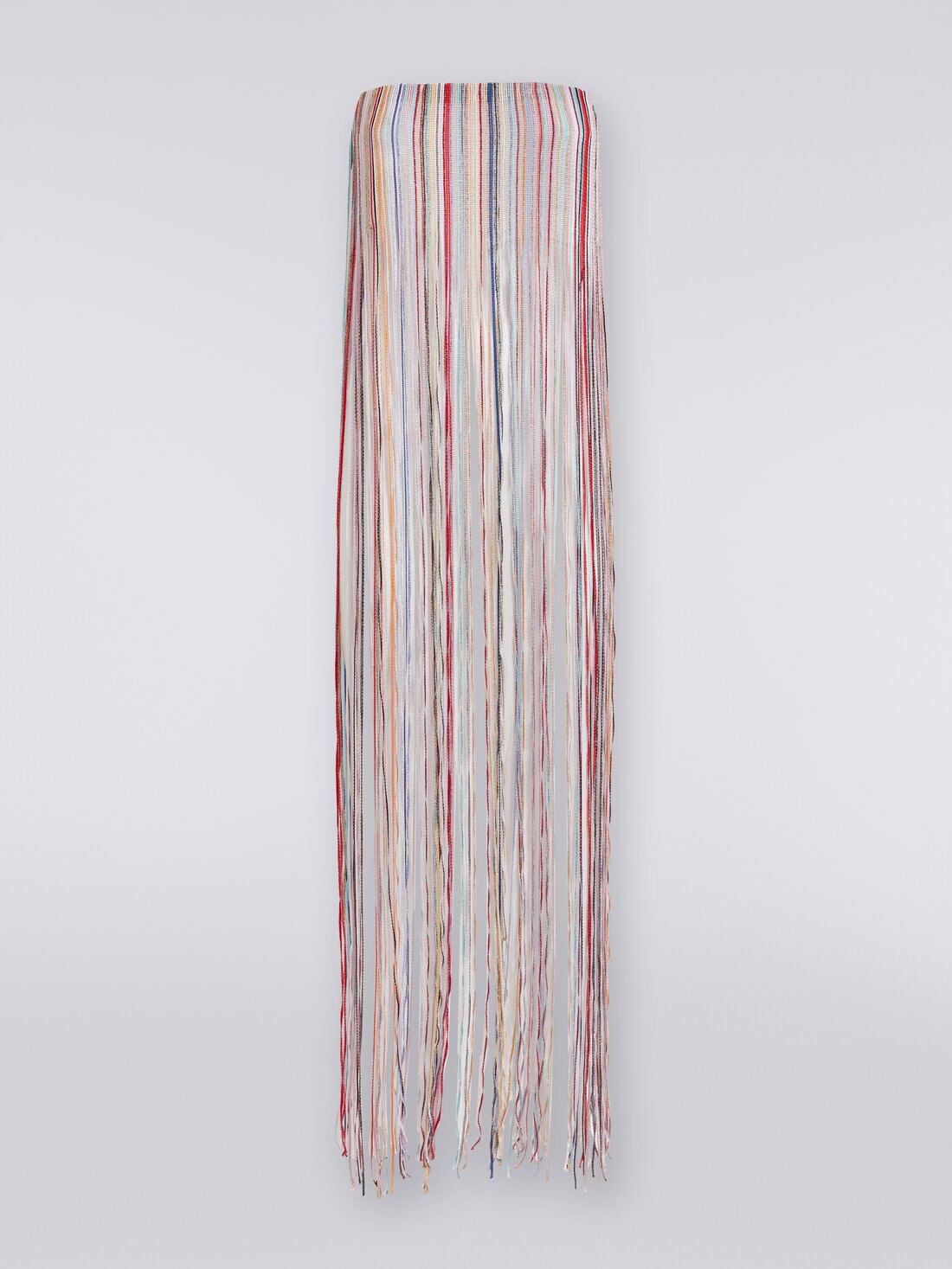 Un sofisticado juego de flecos confeccionados en telar e iluminados por el lúrex caracteriza este vestido cubrebikini bustier. Confeccionado en viscosa, este modelo presenta la parte superior forrada.
