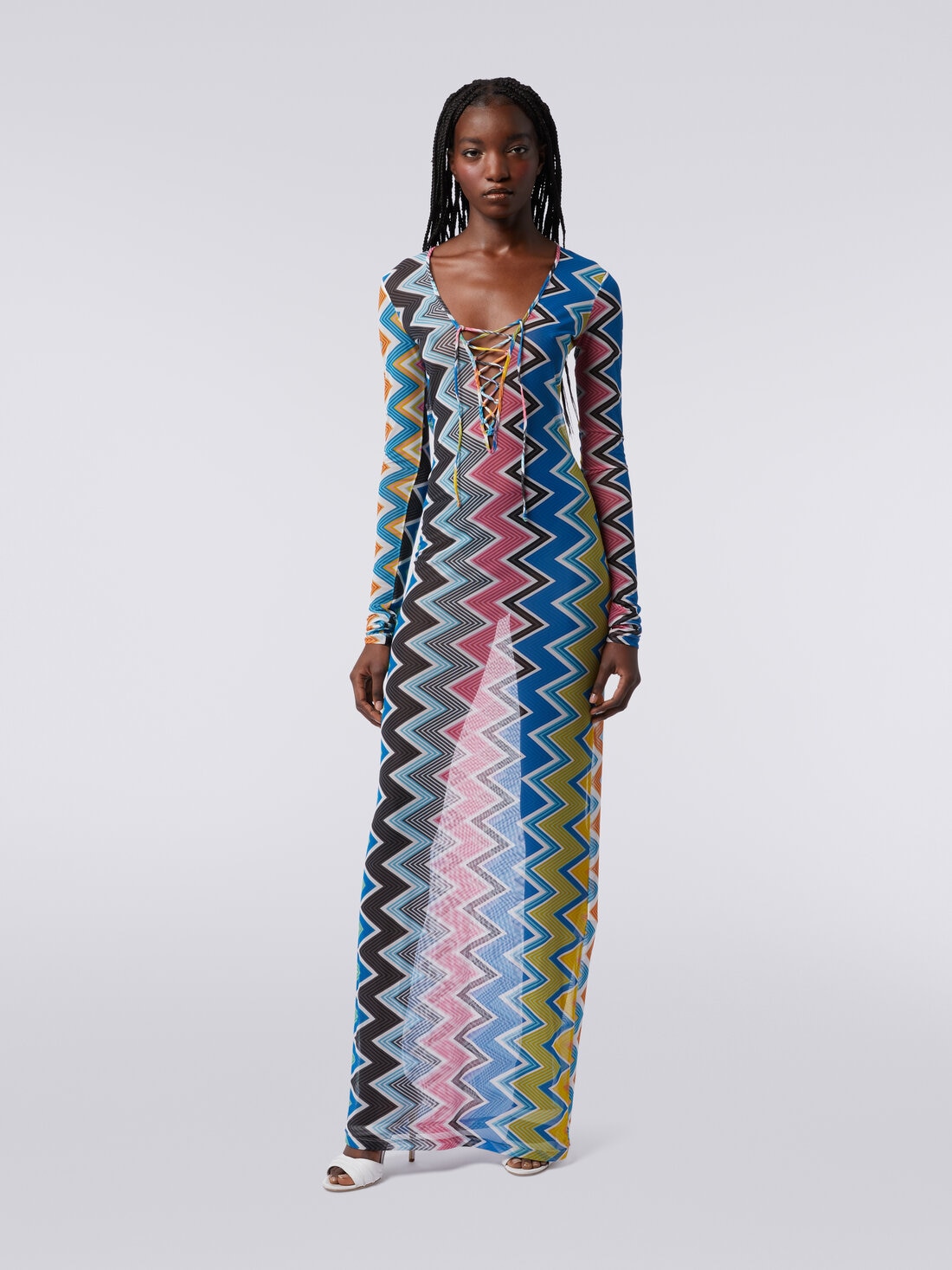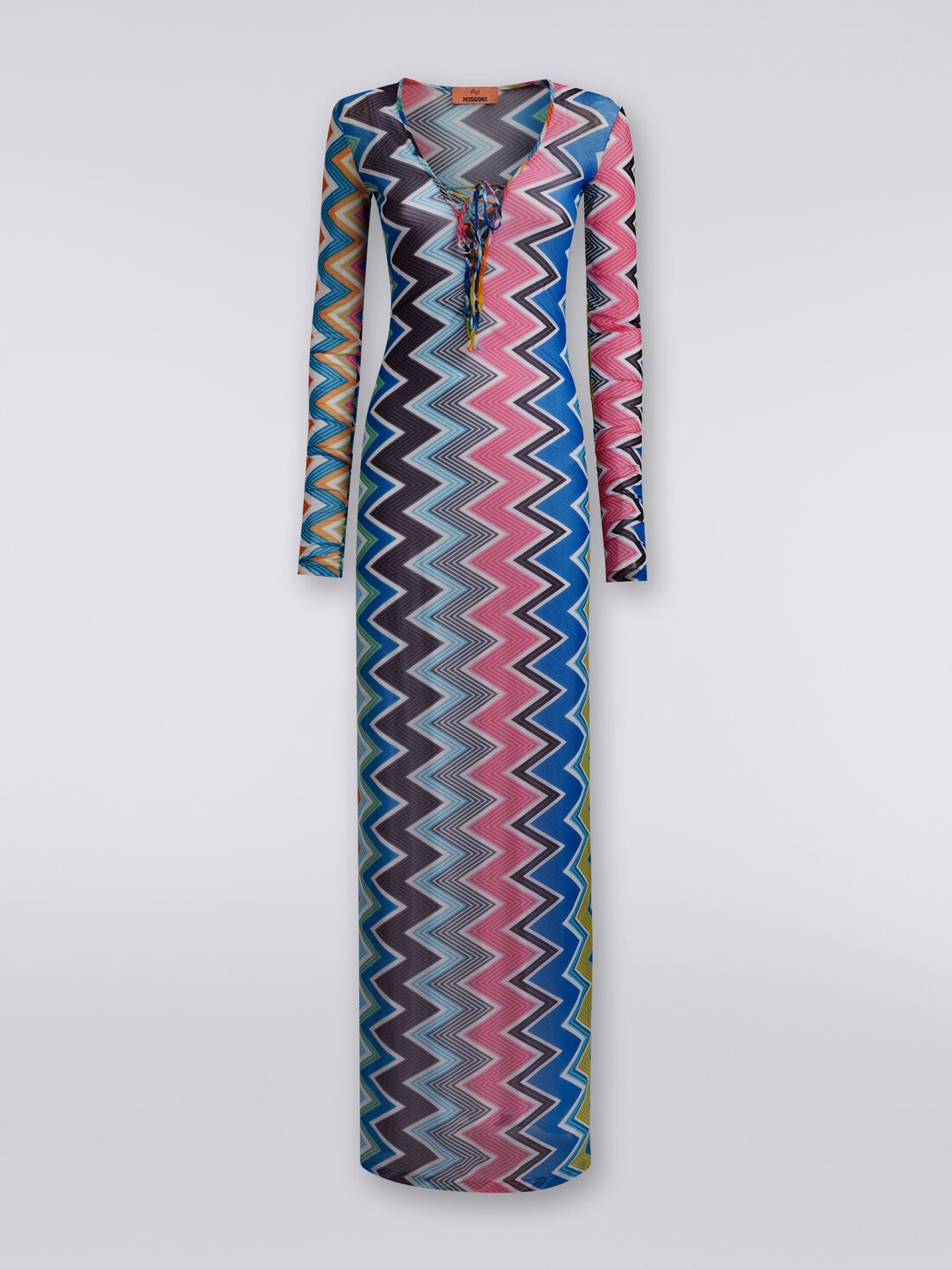 El vestido cubrebikini largo de tul con estampado en zigzag es una obra maestra de elegancia y sofisticación. Las mangas largas y el entalle ceñido que acentúa las líneas de la silueta confieren a la prenda una elegancia inconfundible, mientras que el tejido ligero y transparente crea un efecto delicado y sensual. Perfecto para los días en la playa o las noches de verano, este cubrebikini encarna el estilo distintivo de Missoni con clase y sofisticación.